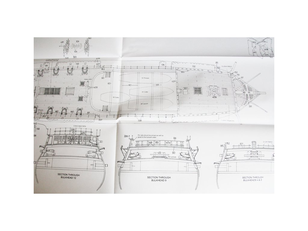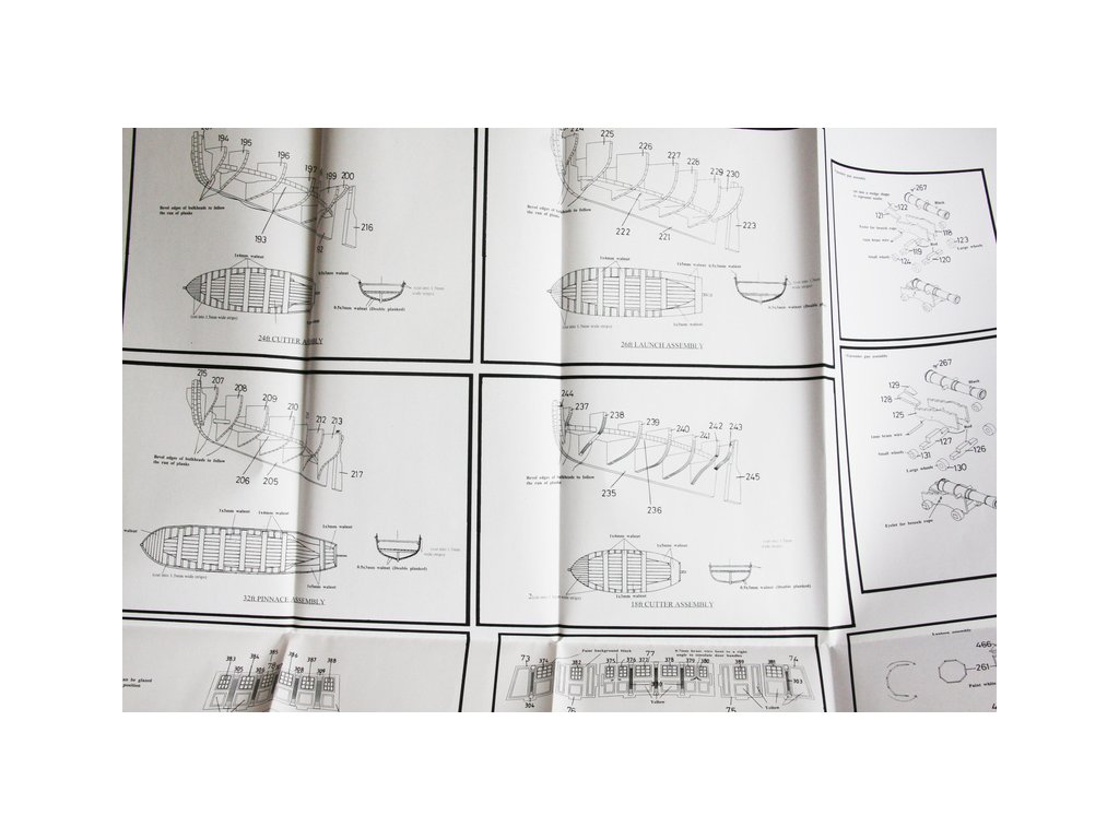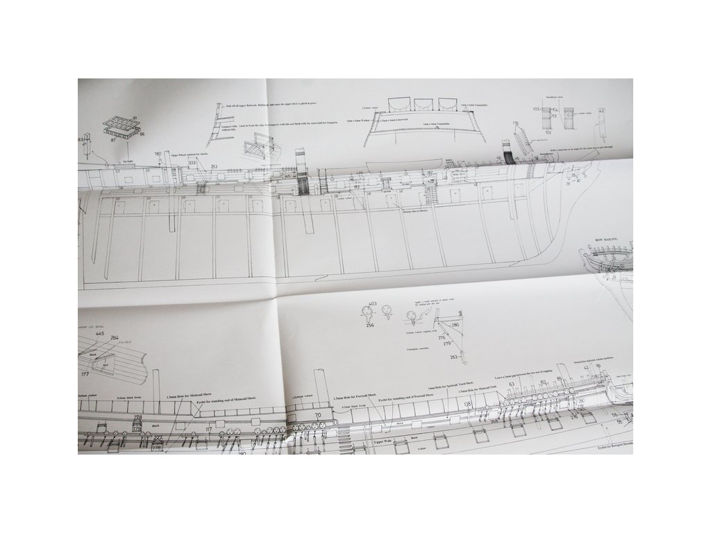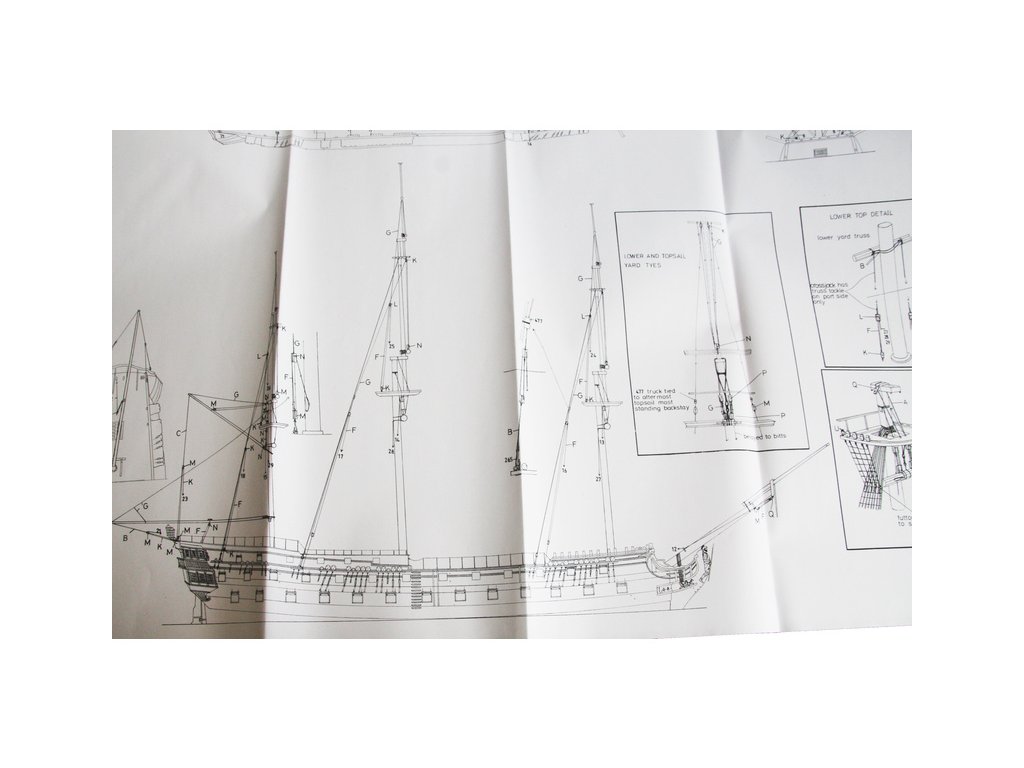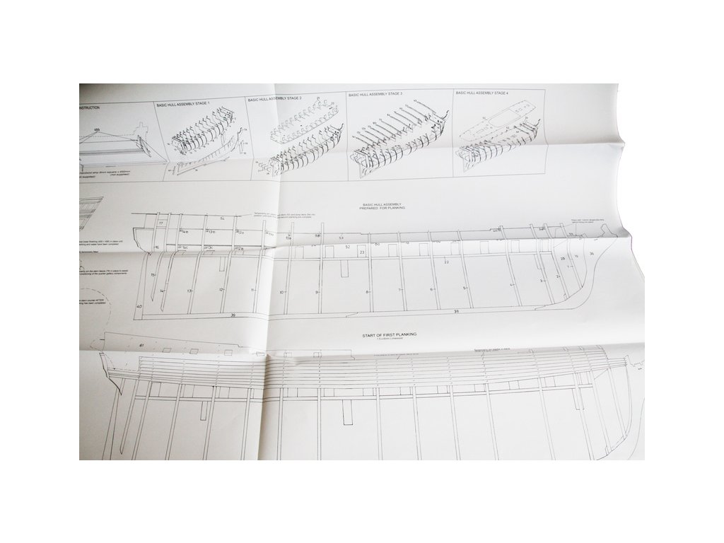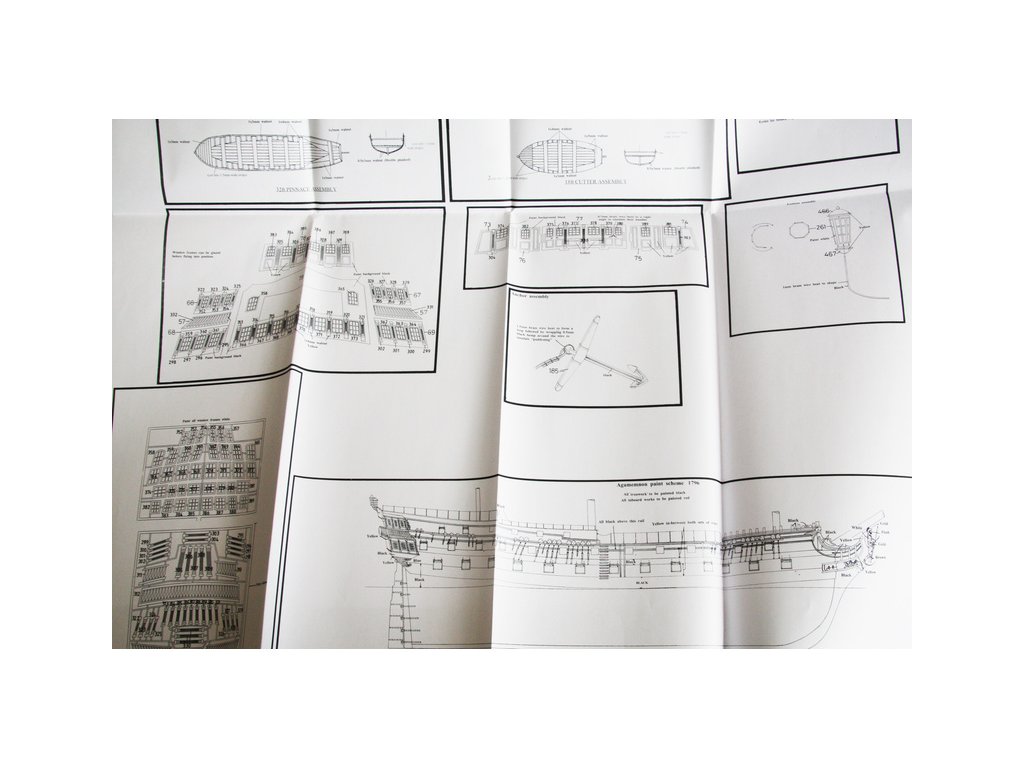 Set obsahuje kompletní sadu výkresové dokumentace modelu v měřítku 1:1 s obrázky jednotlivých detailů. Na výkrese jsou v měřítku nakresleny montážní sestavy, jejich kompletace a to včetně stěžňů a ráhen a způsob vázání lanoví. Vícejazyčný postup stavby rámcově upravuje logické sestavení jednotlivých komponentů.