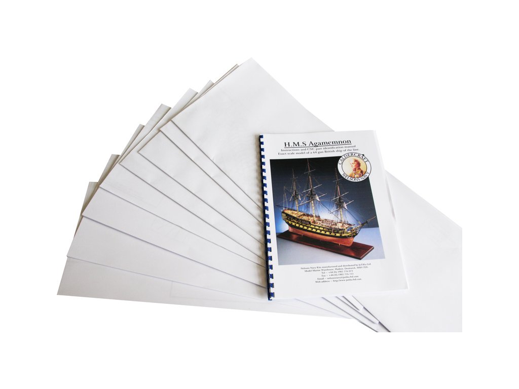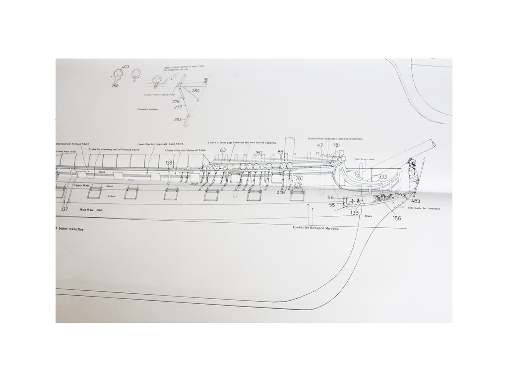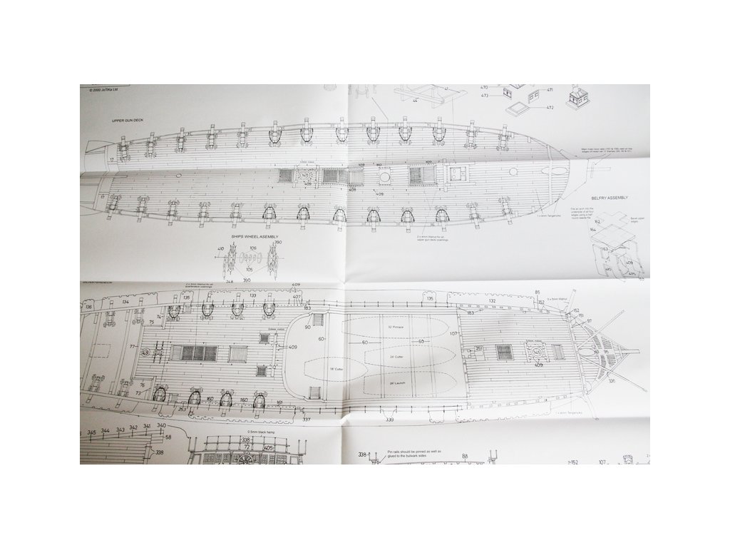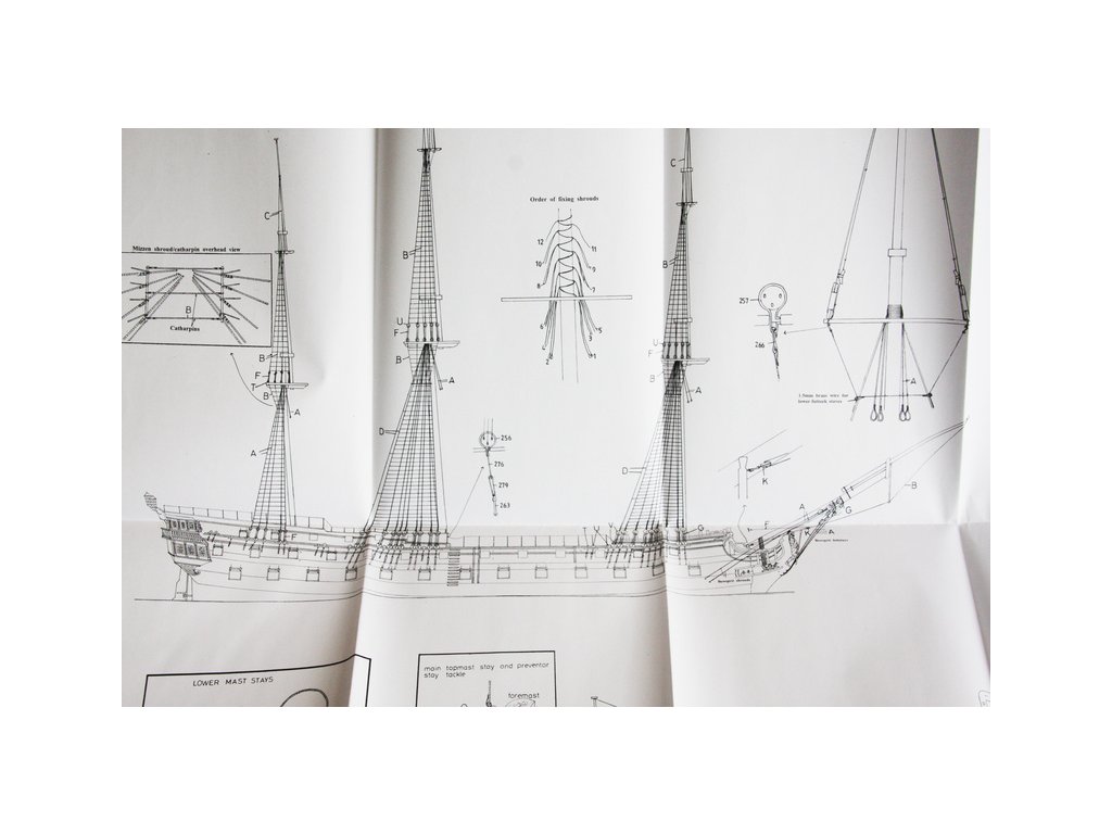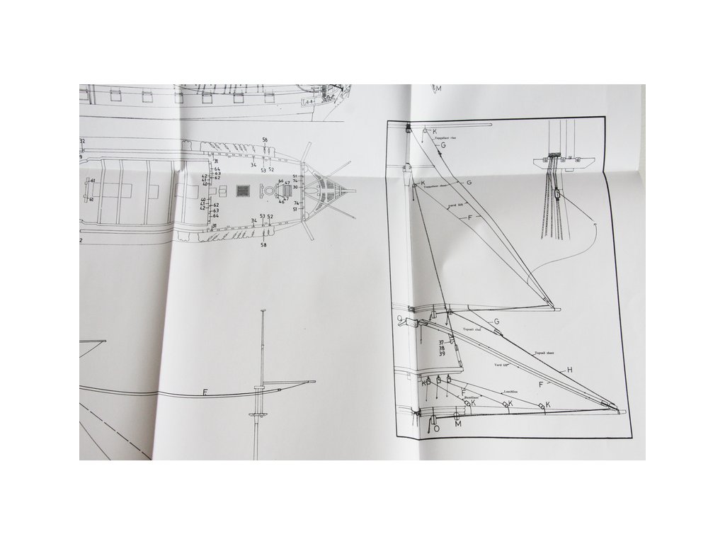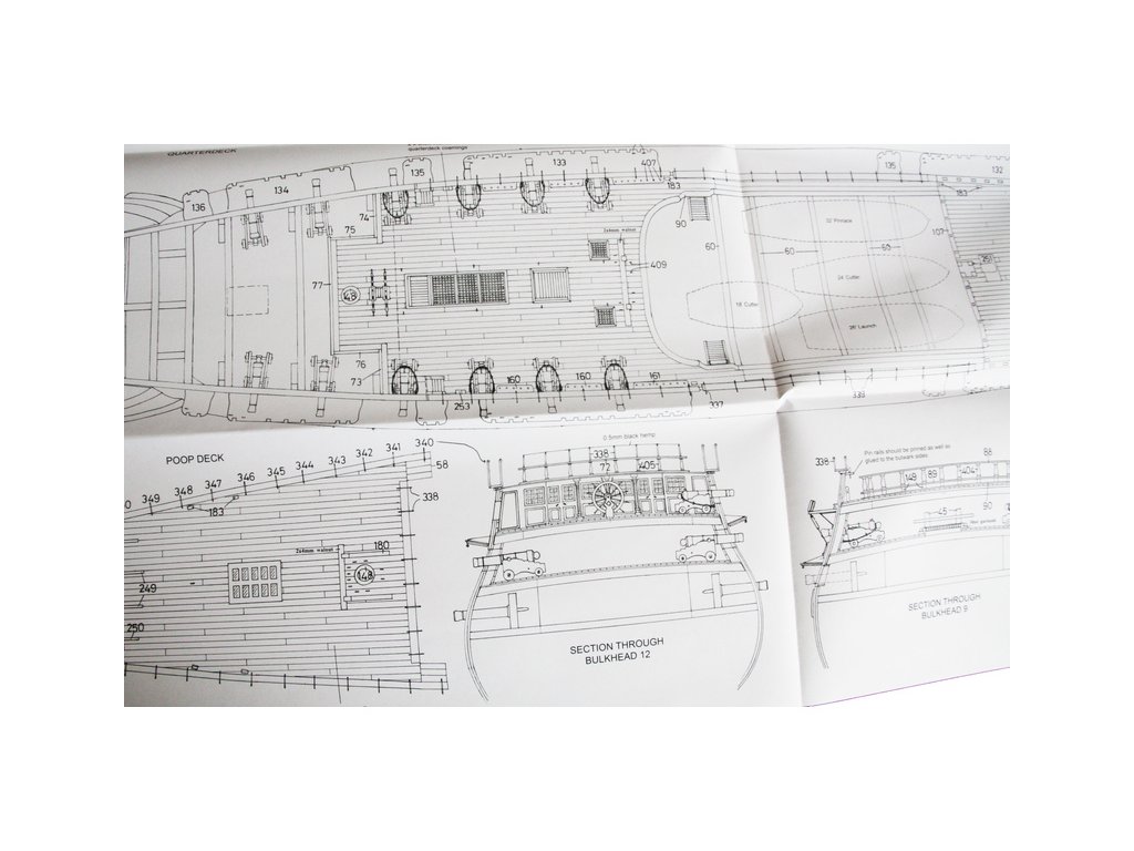 Set obsahuje kompletní sadu výkresové dokumentace modelu v měřítku 1:1 s obrázky jednotlivých detailů. Na výkrese jsou v měřítku nakresleny montážní sestavy, jejich kompletace a to včetně stěžňů a ráhen a způsob vázání lanoví. Vícejazyčný postup stavby rámcově upravuje logické sestavení jednotlivých komponentů.