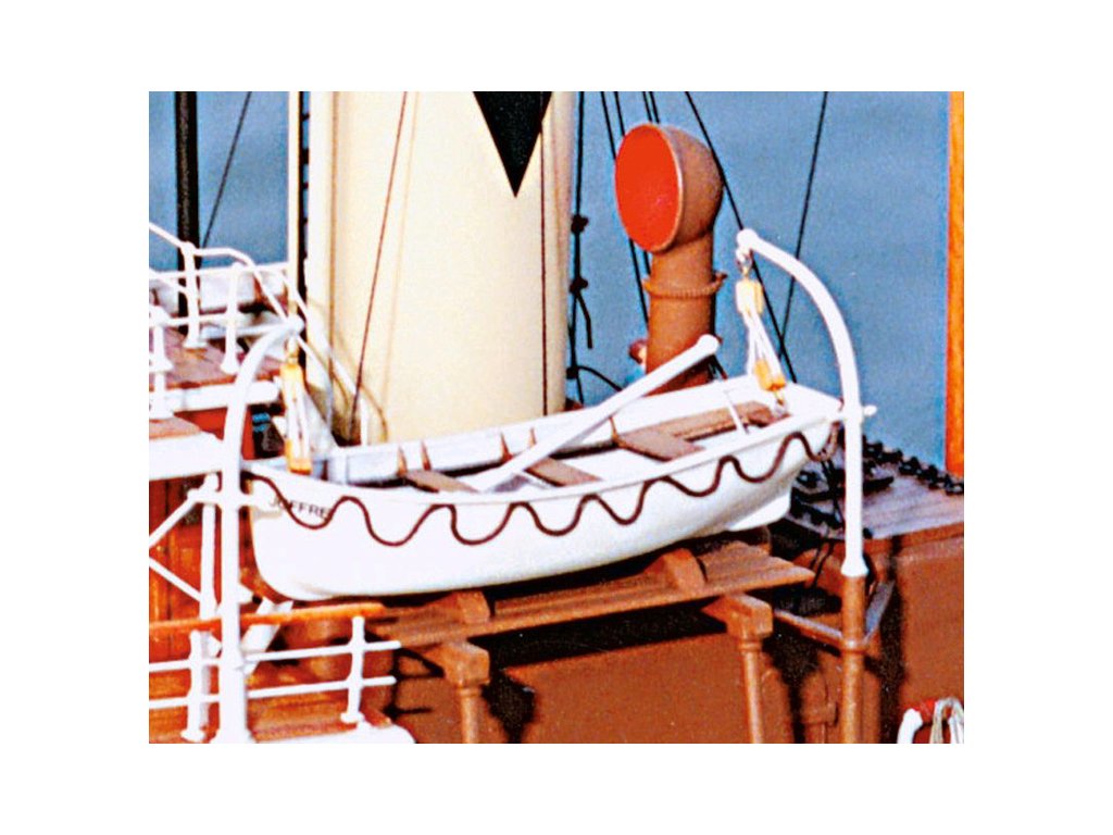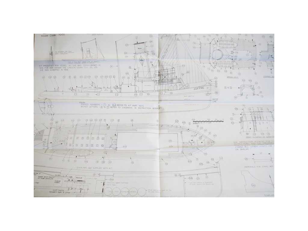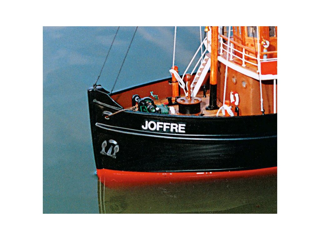 Stavebnice lodi CALDERCRAFT Joffre remorkér 1916 1:48 kit je vybavena laminátovým trupem a dřevěné díly jsou vyrobeny pomocí CNC technologie. Díky přesně vyřezaným dílům je kompletace poměrně rychlá, balení obsahuje více než 300 kovových odlitků