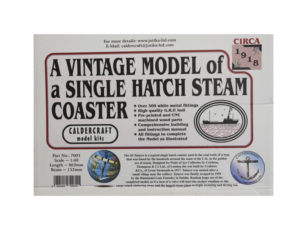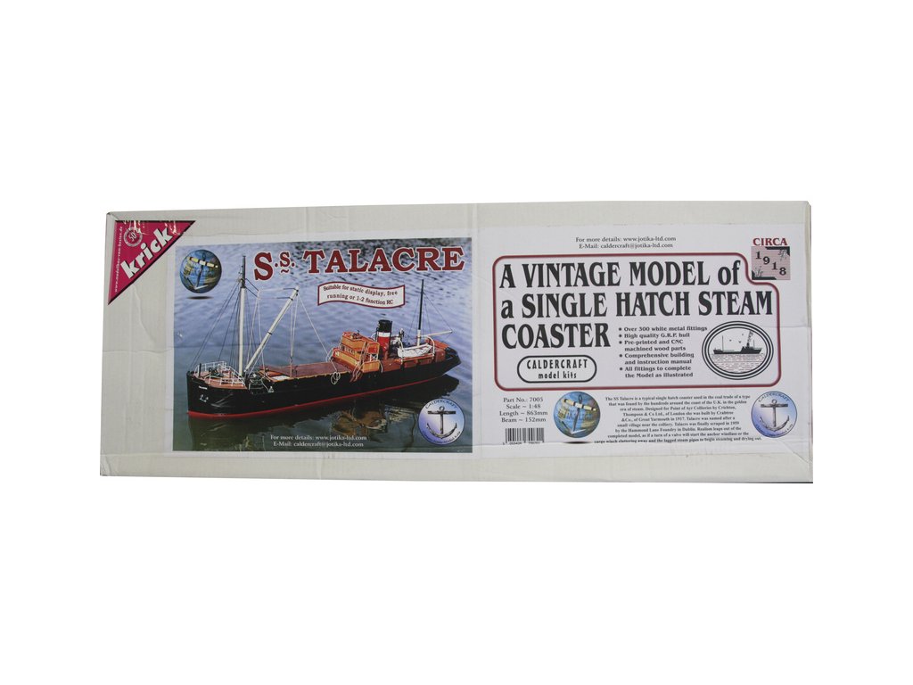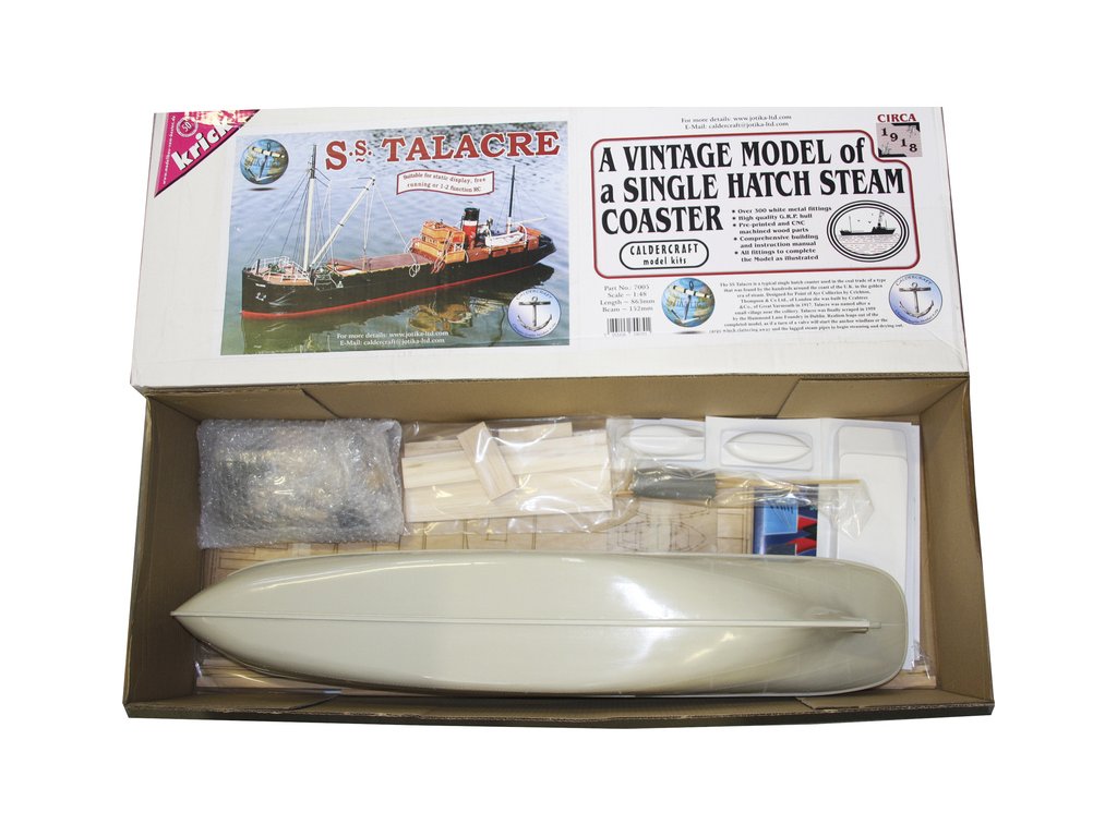 Stavebnice modelu lodi CALDERCRAFT S.S. Talacre z roku 1917 v měřítku 1:48.Předloha je typická pobřežní nákladní loď. Při stavbě makety je k dispozici detailní laminátový trup a spoustu součástí, které přesně odpovídají detailům skutečné lodi. Překližkové díly jsou přesně vyfrézovány na CNC.