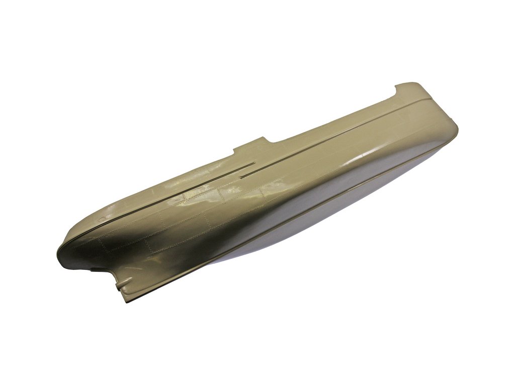 Po otevření víka krabice naleznete laminátový trup, dřevěné díly modelu z překližky, drobné součásti uzavřené v sáčcích, kovové odlitky, plastové výlisky, sadu výkresů a manuál.