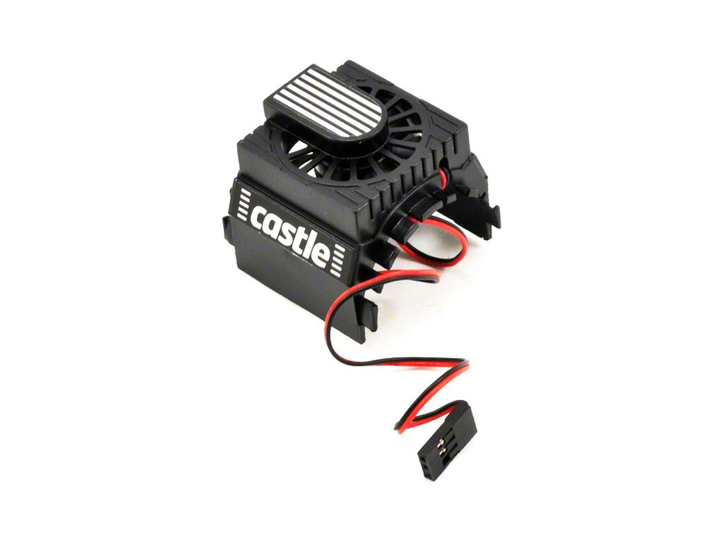 Aktivní chladič Castle Creations je určen pro motory o vnějším průměru 36 mm - což odpovídá motorům řady 540 a 550. Chladič je vybaven ventilátorem 30x30 mm, který lze napájet napětím v rozsahu 5.0 - 8.4 V - napájí se společně se servy. Chladič dokáže snížit teplotu motoru až o 30 °C, a tím i zvýšit jeho výkon a životnost. Kabel od ventilátoru je opatřen standardním servo konektorem. Obsahem balení jsou dvě upevňovací pásky.