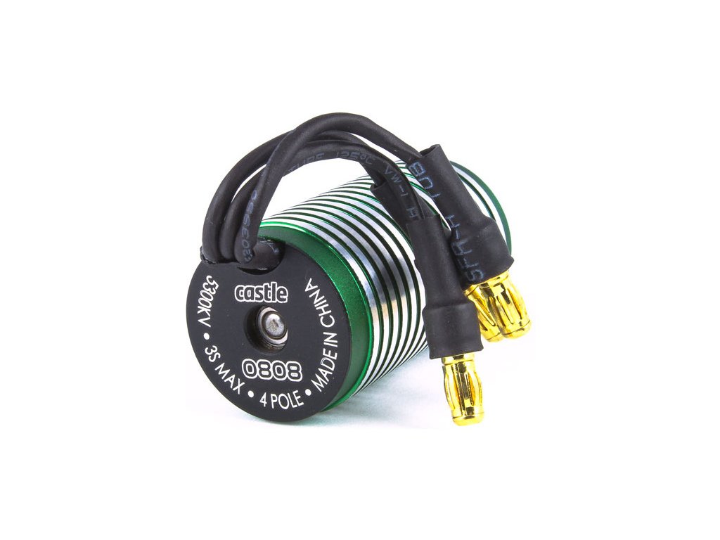 Závodní střídavý čtyřpólový motor Castle 0808 se 5300 ot/min/V představuje špičku mezi střídavými motory RC auta v měřítku 1:18. Malé rozměry, ale brutální výkon a vysoká kvalita zpracování. Napájení až 2 až 3 čl. LiPol.