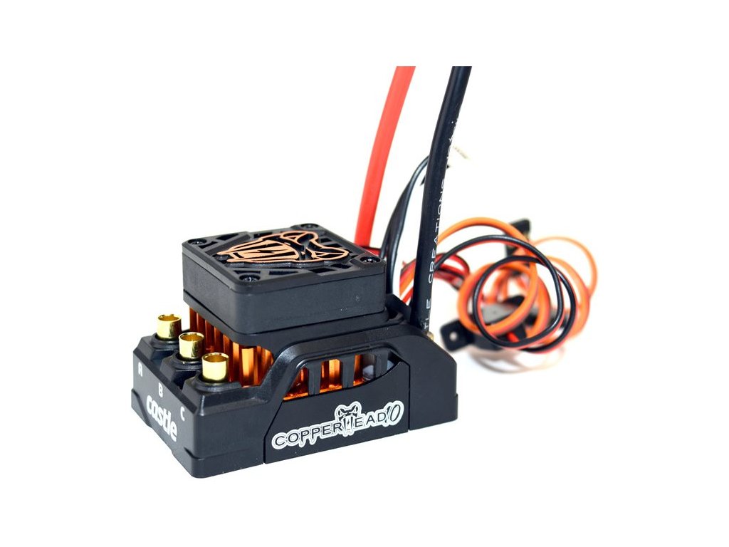 Výkonný regulátor Castle Copperhead se střídavým senzorovým motorem 1406 2280ot/V, pro RC modely aut 1:10 do hmotnosti 4 kg. Voděodolná konstrukce, nastavitelný BEC až 6A, napájení 2S-4S LiPol, možnost nastavení, telemetrie S.BUS2, základní data log. Technologie CRYO-DRIVE.