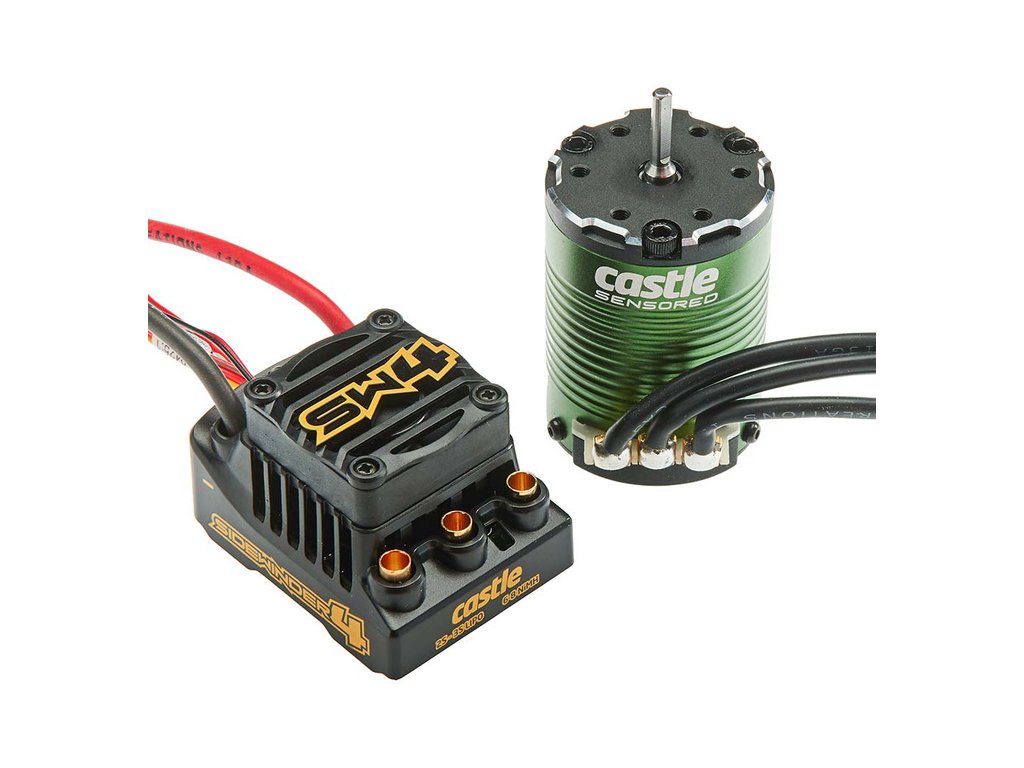 Střídavý senzorový motor Castle 1406 6900 ot/V s regulátorem Castle Sidewinder 4 Cryo-Drive. Sada je určena pro lehké nebo on-road RC modely aut 1:10, jako např. Traxxas 4-Tec 2.0.