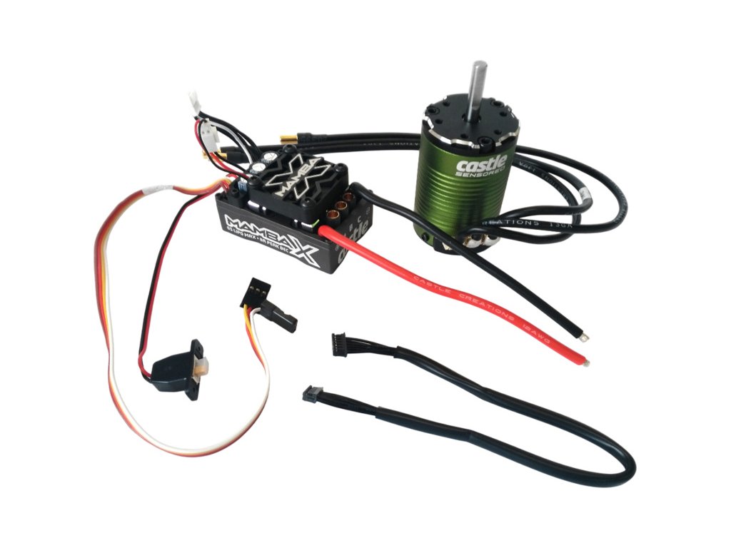 Střídavý senzorový motor Castle 1410 3800 ot/V s hřídelí 3.17 mm a regulátorem Castle Mamba X. Sada je určena pro 2WD/4WD Buggy, Truggy, Short Course nebo 2WD Monster Trucky.