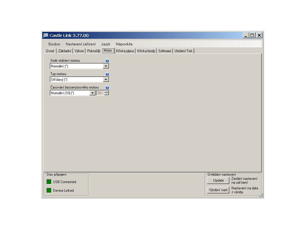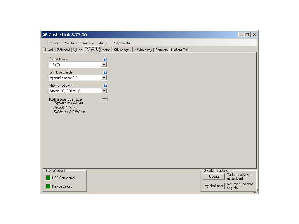 - Pokročilé nastavení pomocí programovací karty, USB programátoru nebo Bluetooth programátoru a aplikace Castle Link (programátory se prodávají zvlášť).