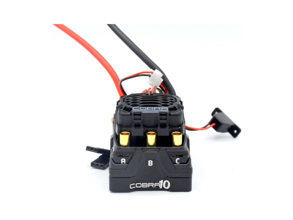 Výkonný regulátor otáček Castle Cobra 10 se střídavým senzorovým motorem 1412 3200ot/min/V (hřídel 5mm), pro RC modely aut v měřítku 1:10 do hmotnosti 3 kg. Napájení 2-4S LiPo, BEC 5-8V (8A). Voděodolná konstrukce, doplňkový vstup pro změny během závodu, záznam naměřených dat. Technologie CRYO-DRIVE.