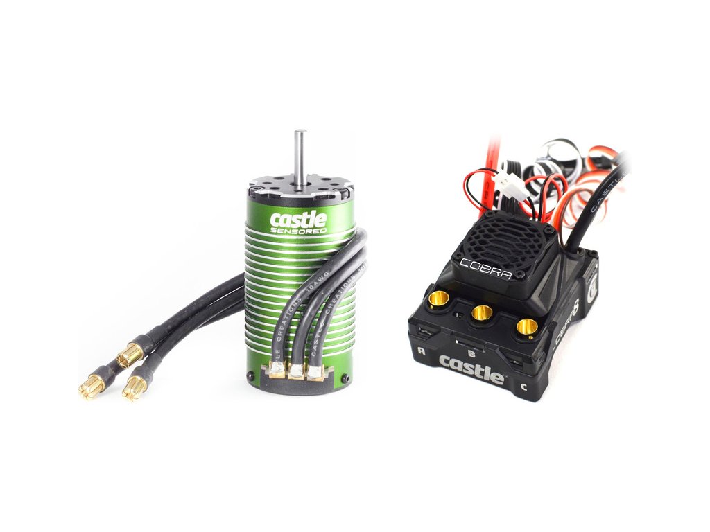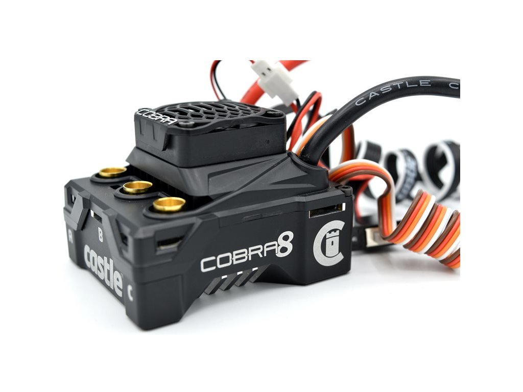 Výkonný regulátor otáček Castle Cobra 8 se střídavým senzorovým motorem 1515 2200kv, pro RC modely aut v měřítku 1:8 a 1:10 do hmotnosti 6.8 kg. Napájení 2-6S LiPo, BEC 5-8V (8A). Voděodolná konstrukce, doplňkový vstup pro změny během závodu, záznam naměřených dat. Technologie CRYO-DRIVE.