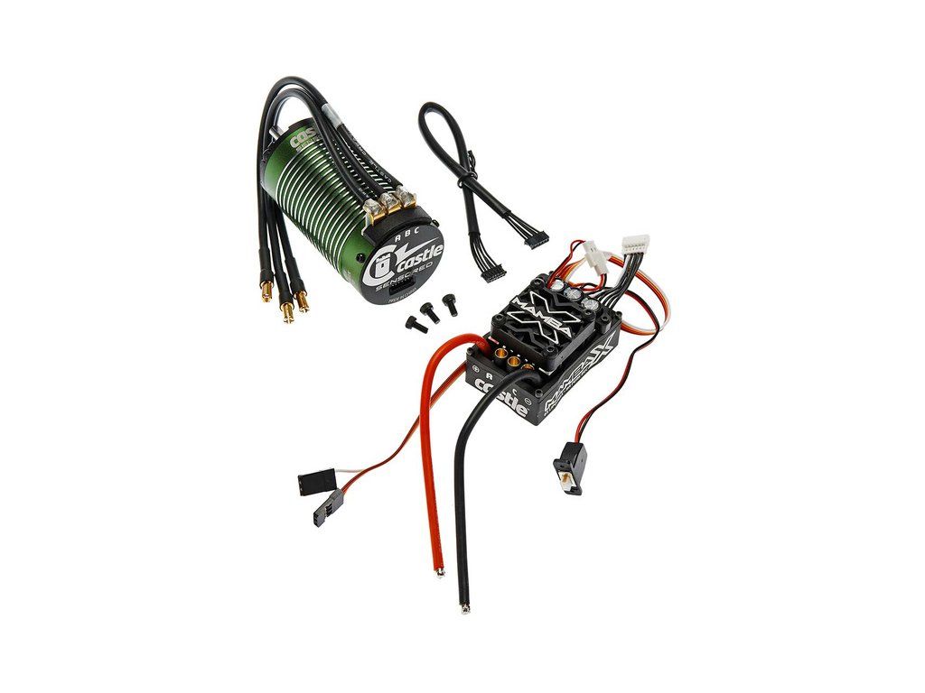 Střídavé kombo se senzorovým motorem Castle 1515 2200ot/V a regulátorem Mamba X, vhodné pro lehčí modely 1:8 do 4 kg, s napájením max. 4S LiPo (s tímto motorem).