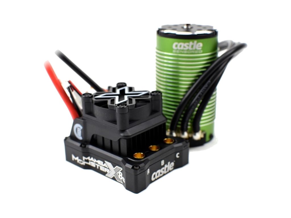 Špičkový elektronický regulátor otáček Castle Mamba Monster X 8S se senzorovým motorem 1717 1260ot/V je připraven pohánět vaše RC auto 1:8 nebo 1:6 o hmotnosti až 9 kg s napájením až 8S LiPol. Využívá průlomovou technologii Castle CRYO-DRIVE™ s efektivnějším odváděním tepla. Voděodolný, aktivní ventilátor.