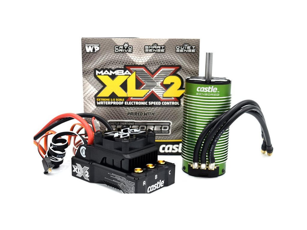 Extrémně výkonný regulátor otáček Castle Mamba XLX 2 a jeden z nejvýkonnějších motorů Castle 2028 1100ot/V (senzorový) v kombu pro RC modely aut v měřítku 1:5. Regulátor je od základu nově navržen skloubí v sobě špičkovou elektroniku s řadou softwarových vylepšení. Revoluční technologie CRYO-DRIVE zvyšuje účinnost a snižuje teplotu elektroniky. Napájecí napětí 3S-8S LiPo (max. 33,6 V). Motor se pyšní výbornou kvalitou zpracování, efektivitou a sníženou produkcí tepla. Jedná se o ideální pohon pro modely 1:5 do hmotnosti 13kg 2WD, do 11kg 4WD. 4-pólová konstrukce motoru s 12 sloty, pro maximální výkon a plynulý chod.