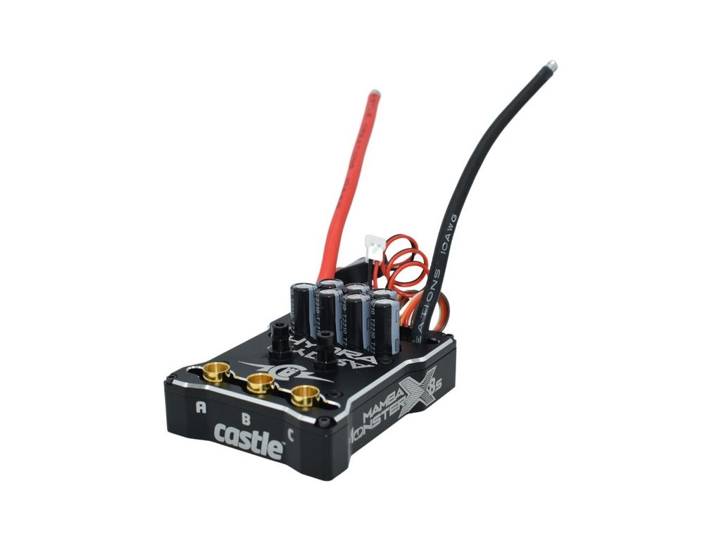 Vzhledem k velkému výkonu regulátoru a možnému vysokému zatížení (proudu), doporučujeme konektory s jmenovitým proudem min. 150 A, typu EC8, Castle 6.5 mm Polarized, Castle 8 mm (kolík), QS8.