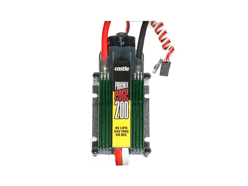 Nejvýkonnější špičkový regulátor Phoenix Edge 200 od Castle Creations je určen pro vrtulníky velikosti 600 až 800 nebo do letadel jako alternativa k motoru o objemu 26 cm³. Napájení 2 až 8 čl. LiPol akumulátorů, max. trvalý proud 200 A.