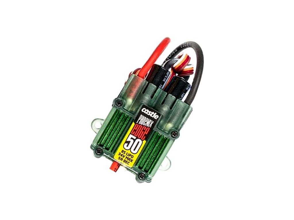 Špičkový regulátor Phoenix Edge 50 od Castle Creations je určen pro vrtulníky velikosti 450 nebo do letadel o velikosti .25 až .35. Napájení 2 až 8 čl. LiPol akumulátorů, max. trvalý proud 50 A.