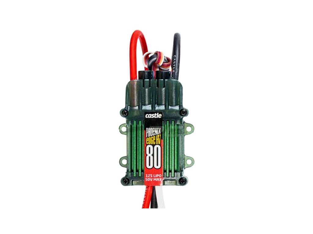 Špičkový regulátor Phoenix Edge 80 HV od Castle Creations je určen pro vrtulníky třídy 600 nebo pro obří letadla. Napájení 3 až 12 čl. LiPol akumulátorů, max. trvalý proud 80 A. Pro dobrý obvod tepla vznikajícího v tranzistorech je regulátor po svém obvodu vybaven velkým chladičem. Regulátor neobsahuje zdroj BEC.