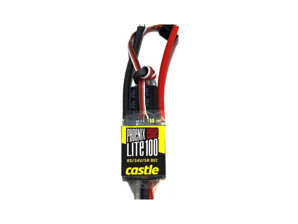 Špičkový regulátor Phoenix Edge Lite 100 od Castle Creations je určen pro vrtulníky velikosti 450 nebo do letadel o velikosti .25 až .35. Napájení 2 až 8 čl. LiPol akumulátorů, max. trvalý proud 100 A. Regulátor je oproti řadě Edge v úspornějším provedení. Proto je vhodný všude tam, kde je důležitá jeho nízká hmotnost a malá velikost.