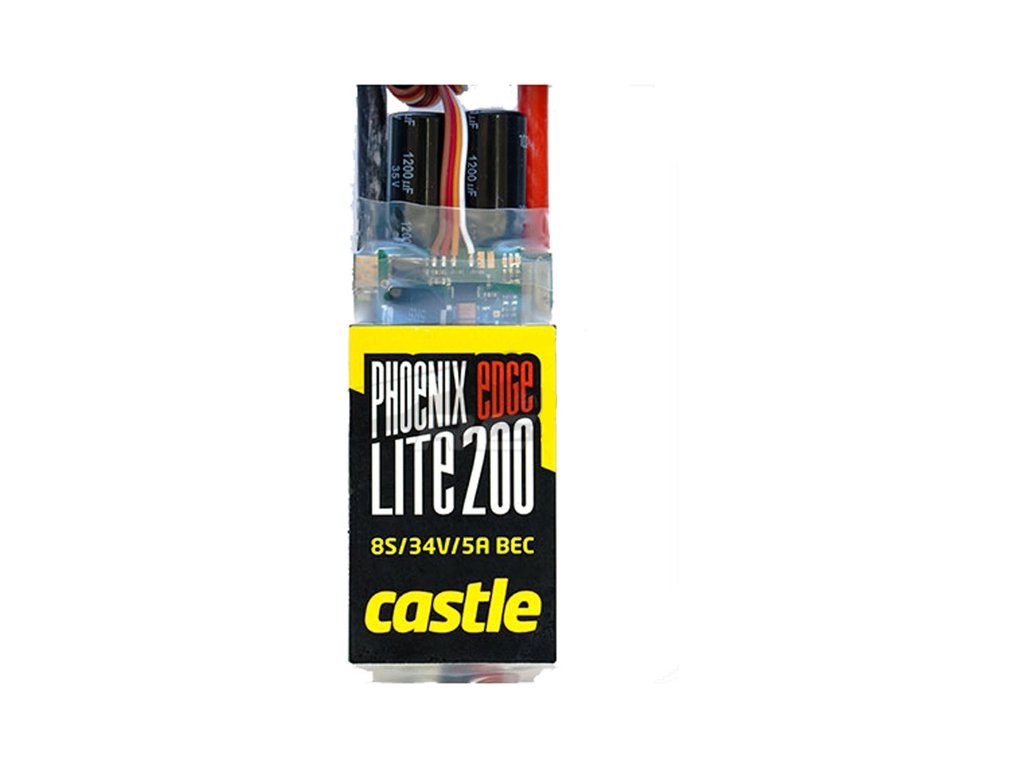 Špičkový regulátor Phoenix Edge Lite 200 od Castle Creations je určen pro vrtulníky velikosti 450 nebo do letadel o velikosti .25 až .35. Napájení 2 až 8 čl. LiPol akumulátorů, max. trvalý proud 200 A. Regulátor je oproti řadě Edge v úspornějším provedení. Proto je vhodný všude tam, kde je důležitá jeho nízká hmotnost a malá velikost.