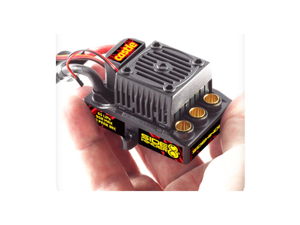 Střídavý regulátor Castle Sidewinder 8 WP je nejlepší volbou pro Váš model v měřítku 1:8 a 1:10 do hmotnosti modelu 5 kilogramů. Díky použití výkonného signálového procesoru (DSP) a moderních algoritmů je zajištěno velmi jemné řízení motoru již od nejnižších otáček.