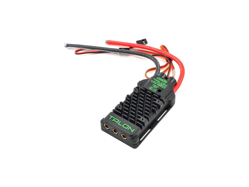 Regulátor Castle Talon 120 je určen pro velké modely vrtulníků. Má zabudovaný BEC 6 nebo 8 V s trvalým výstupním trvalým proudem 10A, krátkodobým až 20A. Napájení 3 až 12 čl. LiPol, hliníkové pouzdro, které lze volitelně opatřit chladičem.