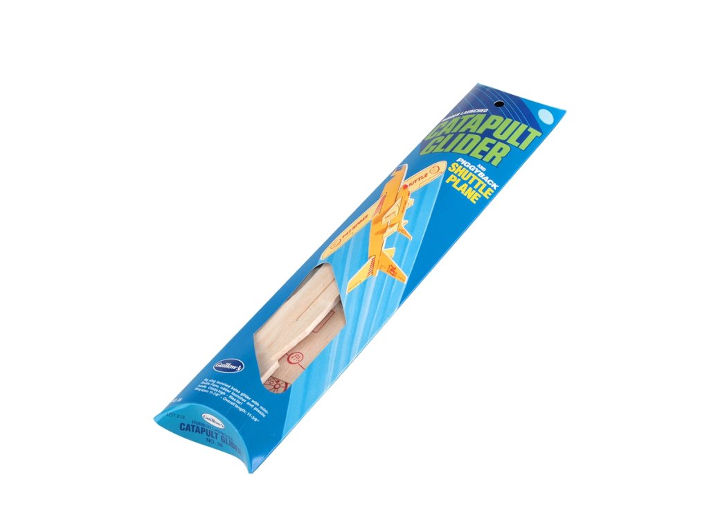 Celobalsové vystřelovací házedlo nesoucí malý model raketoplánu Space Shuttle na hřbetě připomínající skutečný Boeing 747 používaný pro přepravu raketoplánů. U nás raketoplány rozhodně nekončí!