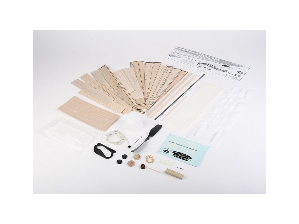 Stavebnice obsahuje: balsové předseknuté díly, balsové nosníky, předseknuté díly z plastikové překližky, vakuově lisované maketové díly (kryt kabiny, kryt motoru, kryty kol...), plastovou vrtuli s hřídelí a hlavicí, gumový svazek (guma 5x1mm), ocelovou strunu na podvozek a další drobné díly, kola, potahový papír, rukojeť a vahadlo pro upoutaný model, aršík mokrých obtisků, stavební plán.