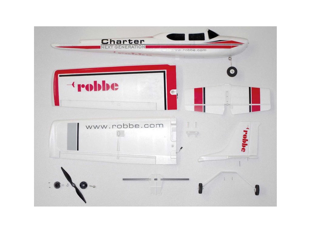 Součástí balení setu jsou hotové dekorované součásti modelu letadla Charter Next Generation, které je vybaveno střídavým motorem, regulátorem 40A, servy, 3-kolým podvozkem, vrtulí s kuželem, spojkou křídla a montážním příslušenstvím, návod v češtině, manuál DE.