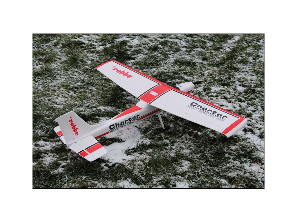 RC model letadla Charter Next Generation o rozpětí 1,46 m v provedení PNP se střídavým motorem, regulátorem a 5 servy. Vyroben z odolné pěnové hmoty EPO, dělené křídlo, nákladový prostor pro shoz, tříkolý podvozek. Ideální cvičný motorový model.