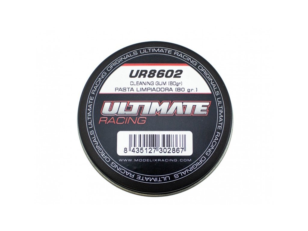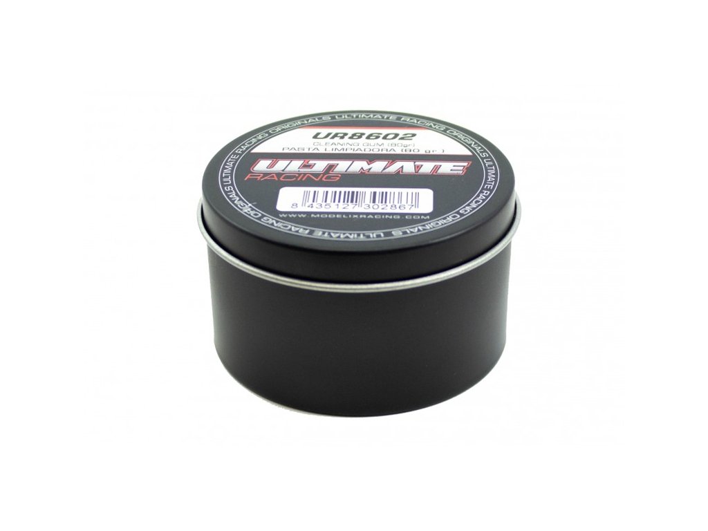 Toto je čisticí guma od společnosti Ultimate Racing. Jedná se o syntetický a lepivý tmel, který vám pomůže snadno odstranit nečistoty, prach, olej nebo mastnotu, které váš vůz nasbíral na trati. Guma je skvělá i pro čištění motoru a výfuků. Při použití čisticí gumy ji nejprve hněťte v rukou, dokud se guma nestane tvárnou, a poté ji vytvarujte do malé kuličky. Poté žvýkačku přitiskněte na znečištěný úsek a poté ji odtáhněte, abyste odstranili všechny nečistoty a špínu; opakujte, dokud nebude úsek zcela čistý. Pokud zůstanou zbytky žvýkačky, stačí žvýkačku znovu přitlačit na zbytky a ty se odstraní. Pro odstranění nečistot z gumy ji stačí znovu promíchat, nečistoty se vstřebají a je připravena k dalšímu použití.