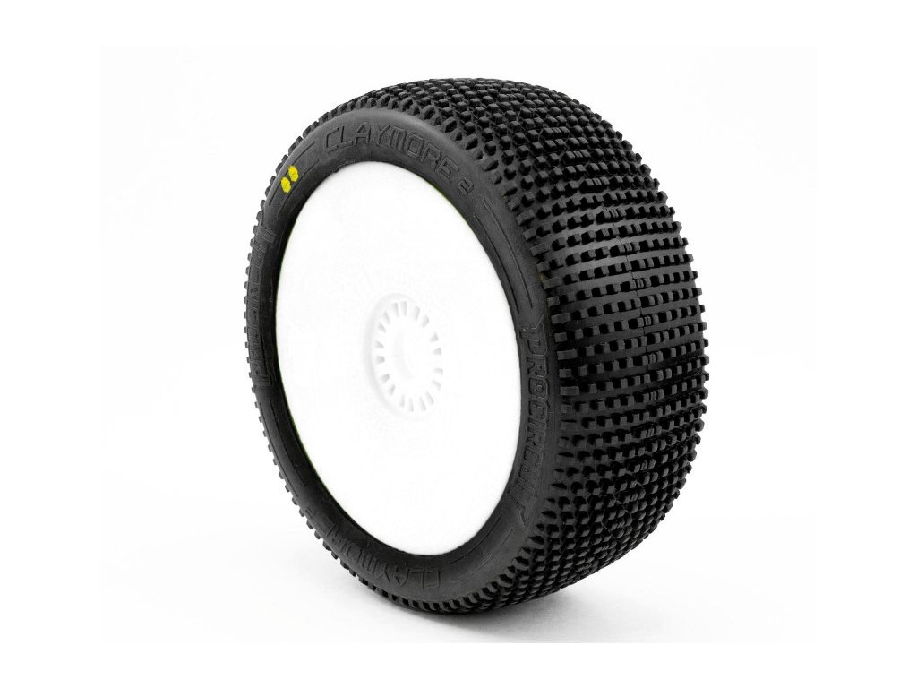 CLAYMORE V2 BUGGY S2 (SOFT) nalepené pneumatiky, bílé disky, 2 ks.