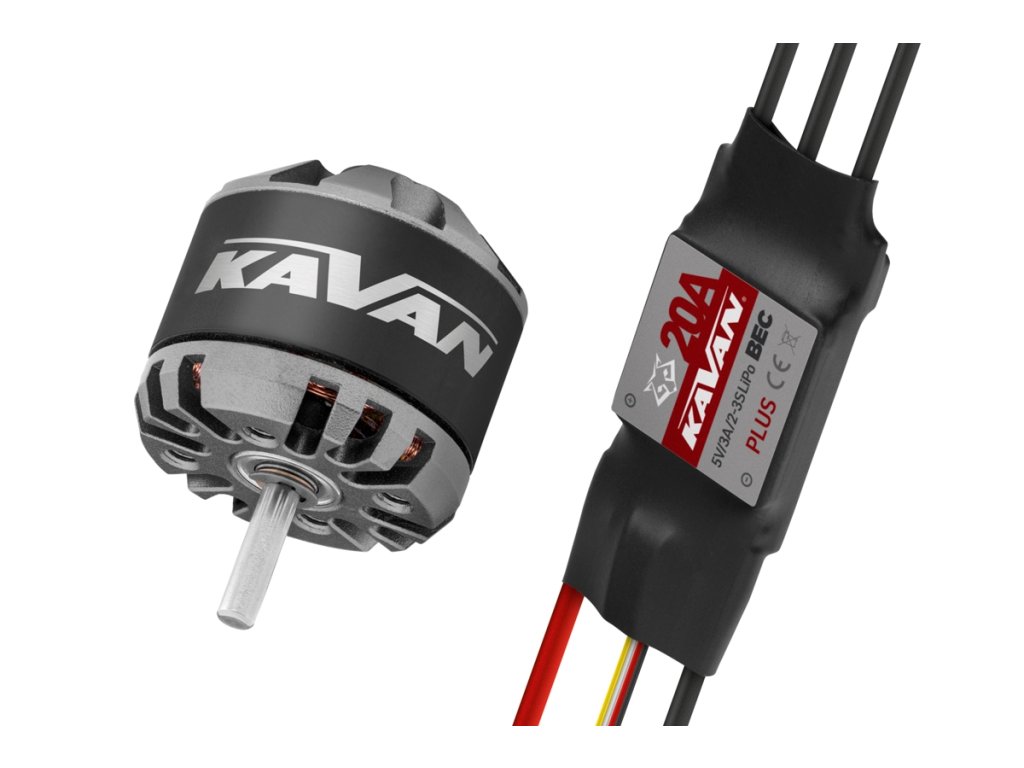 Combo set střídavého elektromotoru s rotačním pláštěm s regulátorem 20 A pro modely letadel: větroň 450g, trenér 450g, akro 400g, 3D 300g, KV1400 ot./min na V, napájení Lixx 2-3s, hřídel 3.175 mm.