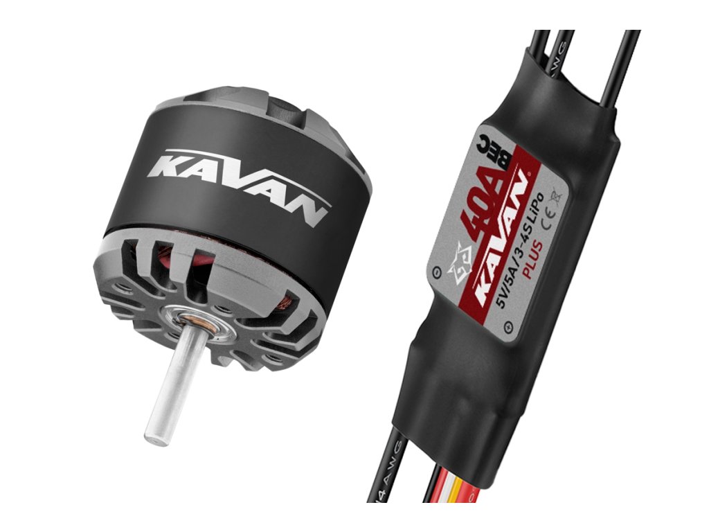 Combo set střídavého elektromotoru s rotačním pláštěm s regulátorem 40 A pro modely letadel: větroň 1800g, trenér 1700g, akro 1300g, 3D 1050g, KV850 ot./min na V, napájení Lixx 3-4s, hřídel 4.0 mm.