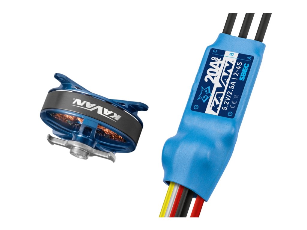 Combo set střídavého elektromotoru s rotačním pláštěm s regulátorem 20A pro modely letadel: větroň 250g, trenér 250g, akro 200g, 3D 150g, KV1800 ot./min na V, napájení Lixx 2-3s, hřídel 4 mm.