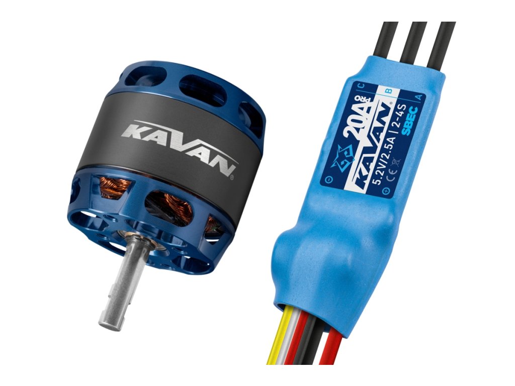 Combo set střídavého elektromotoru s rotačním pláštěm s regulátorem 20A pro modely letadel: větroň 450g, trenér 450g, akro 400g, 3D 330g, KV1200 ot./min na V, napájení Lixx 2-4s, hřídel 4 mm.
