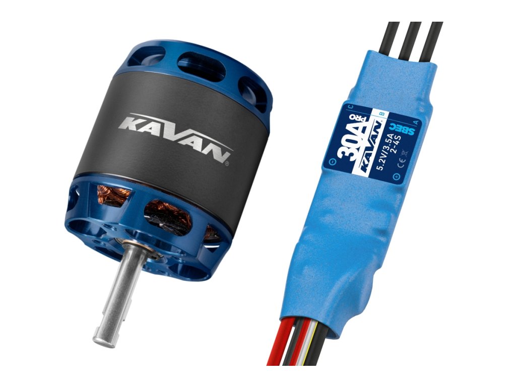 Combo set střídavého elektromotoru s rotačním pláštěm s regulátorem 30A pro modely letadel: větroň 1050g, trenér 900g, akro 800g, 3D 600g, KV850 ot./min na V, napájení Lixx 3-4s, hřídel 4 mm.