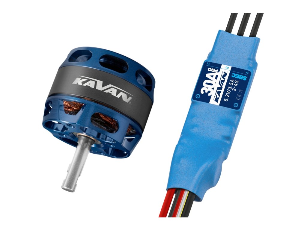 Combo set střídavého elektromotoru s rotačním pláštěm s regulátorem 30A pro modely letadel: větroň 1200g, trenér 1000g, akro 850g, 3D 750g, KV1200 ot./min na V, napájení Lixx 3-4s, hřídel 5 mm.