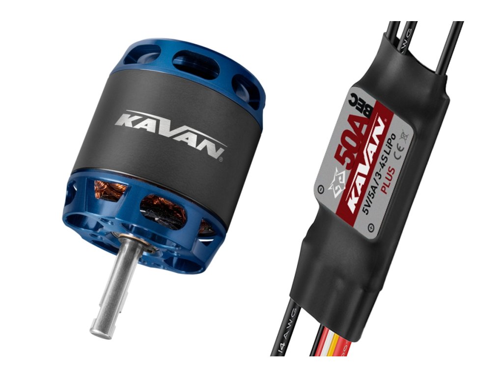 Combo set střídavého elektromotoru s rotačním pláštěm s regulátorem 50A pro modely letadel: větroň 2400g, trenér 2200g, akro 1900g, 3D 1400g, KV830 ot./min na V, napájení Lixx 3-4s, hřídel 5 mm.