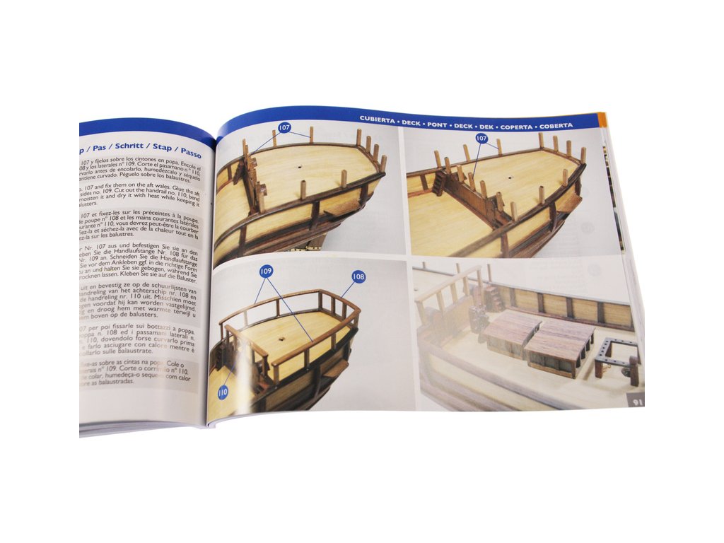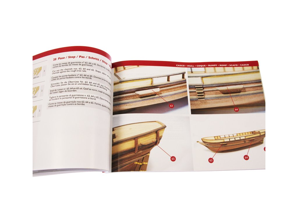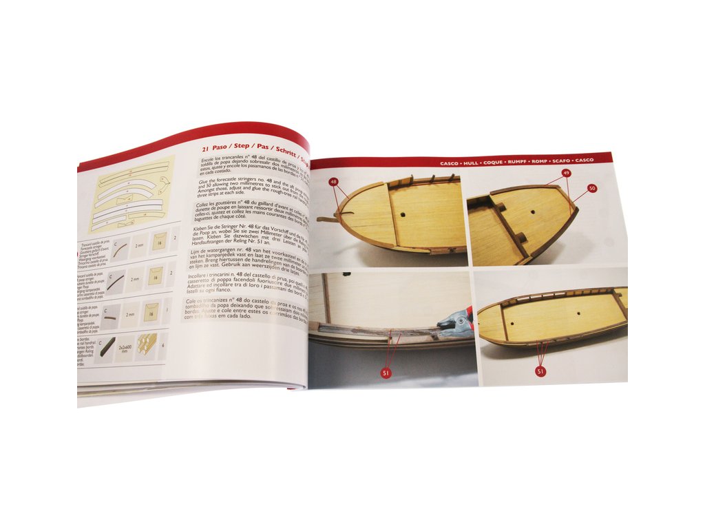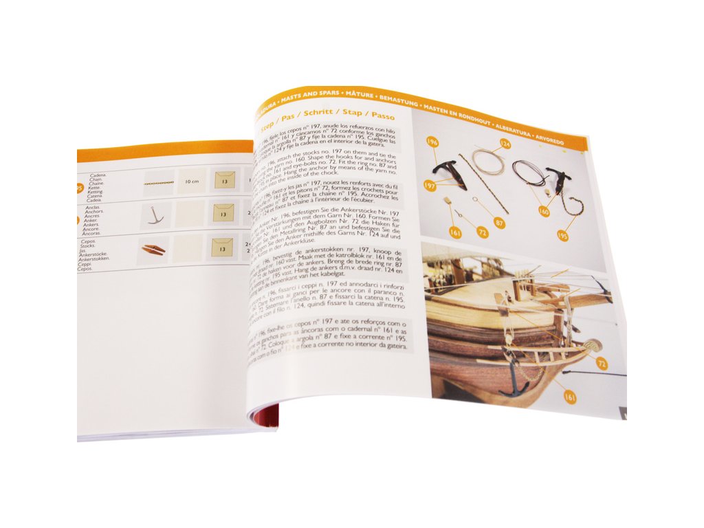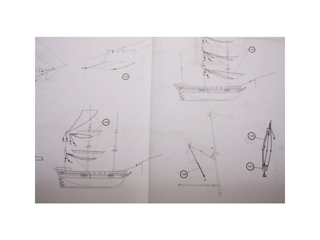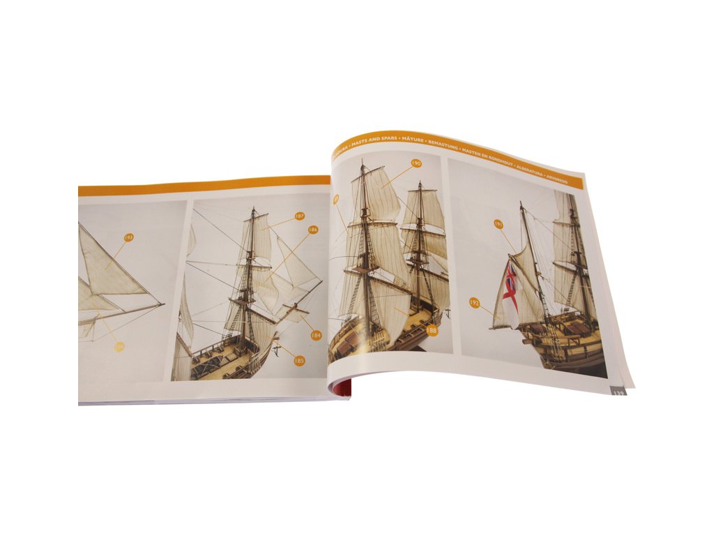 Stavebnice je bohatě vybavena veškerým kováním, nafukovacími čluny a šitými plachtami. Kýl a žebra jsou vyříznuty přesně laserem. Materiál je ve špičkové kvalitě. Sestavení pomáhají podrobné stavební plány a pokyny s mnoha ilustracemi. Předpokládá se určitá zkušenost a manuální zručnost stavitele a schopnost řešit stavební problémy. Návod určuje postup stavby ale nemůže obsáhnout technologii zpracování materiálů, způsob lepení, barvení, broušení či lakování. Jde o klasické modelářské postupy, které si každý modelář volí podle svých možností a zvyklostí. Proto je potřeba se obrnit trpělivostí a potřebné informace čerpat na webových stránkách lodních modelářů apod.