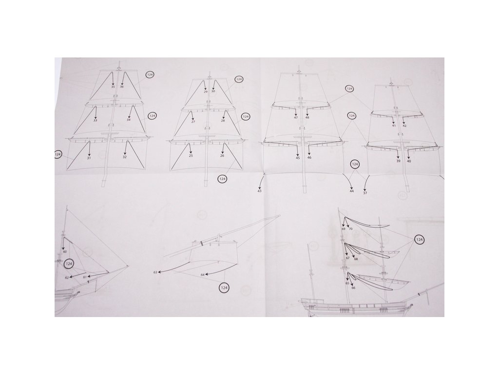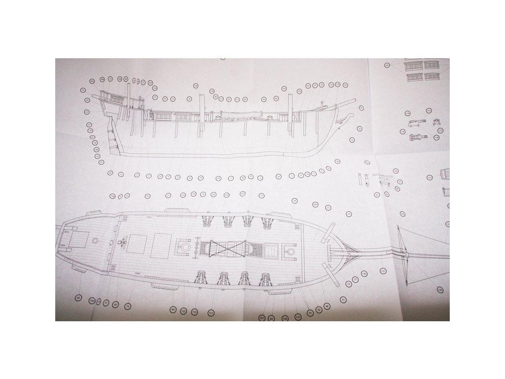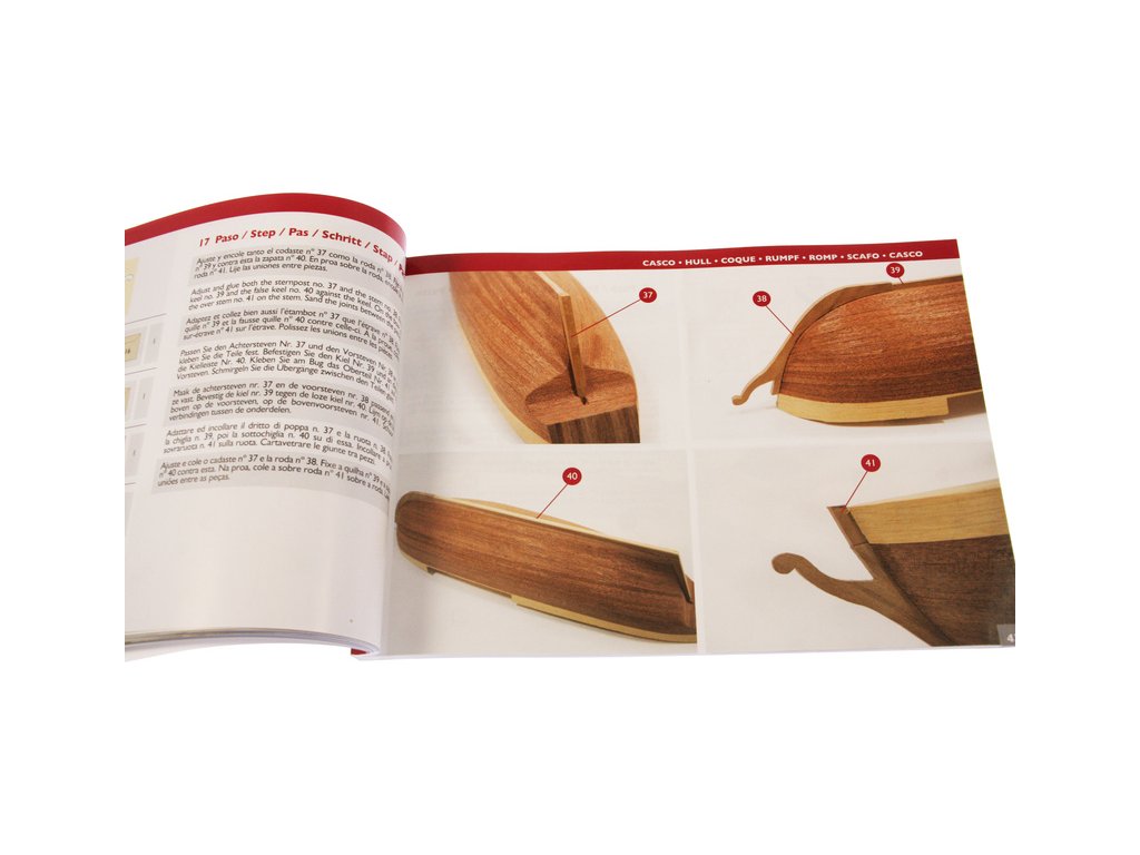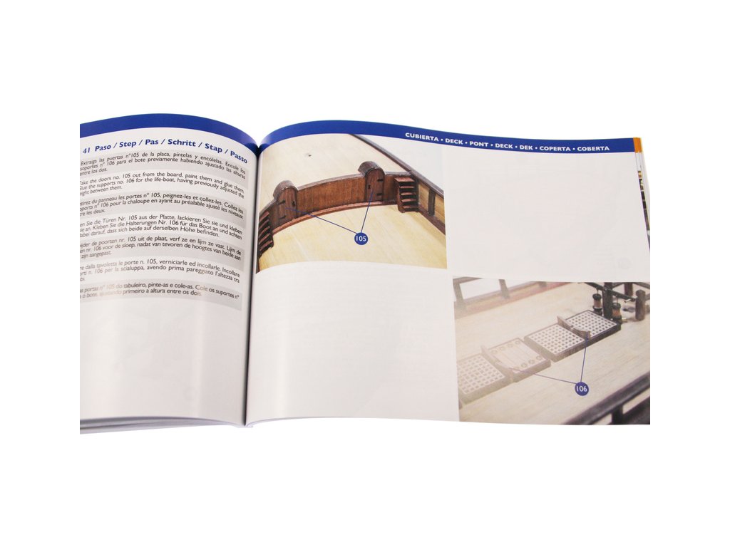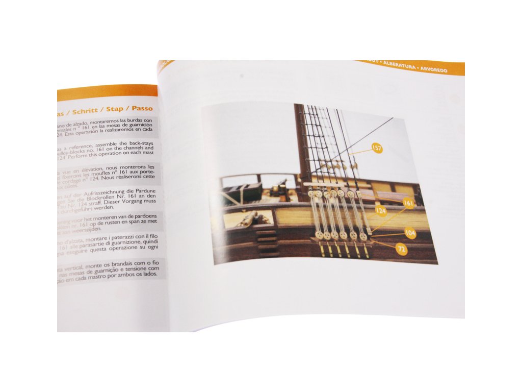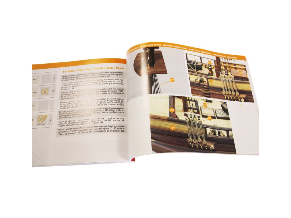 Stavebnice je bohatě vybavena veškerým kováním, nafukovacími čluny a šitými plachtami. Kýl a žebra jsou vyříznuty přesně laserem. Materiál je ve špičkové kvalitě. Sestavení pomáhají podrobné stavební plány a pokyny s mnoha ilustracemi. Předpokládá se určitá zkušenost a manuální zručnost stavitele a schopnost řešit stavební problémy. Návod určuje postup stavby ale nemůže obsáhnout technologii zpracování materiálů, způsob lepení, barvení, broušení či lakování. Jde o klasické modelářské postupy, které si každý modelář volí podle svých možností a zvyklostí. Proto je potřeba se obrnit trpělivostí a potřebné informace čerpat na webových stránkách lodních modelářů apod.