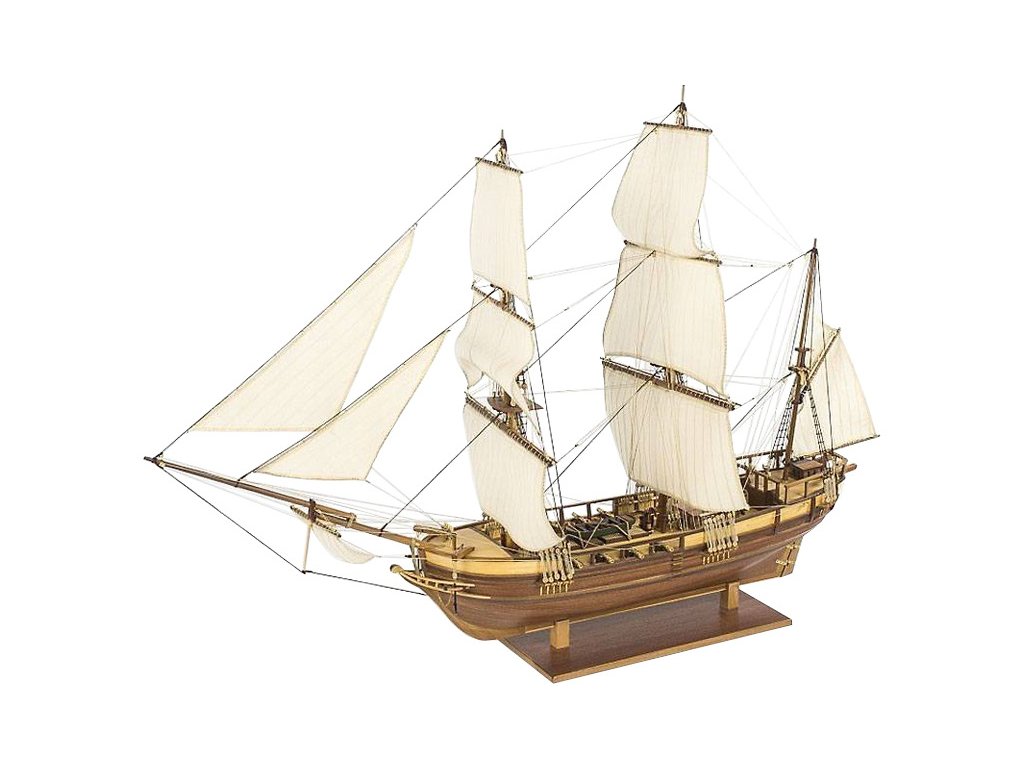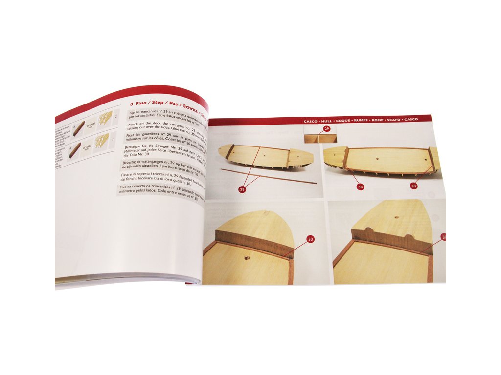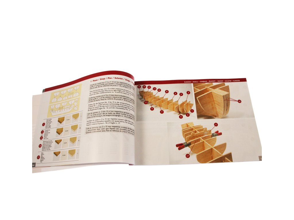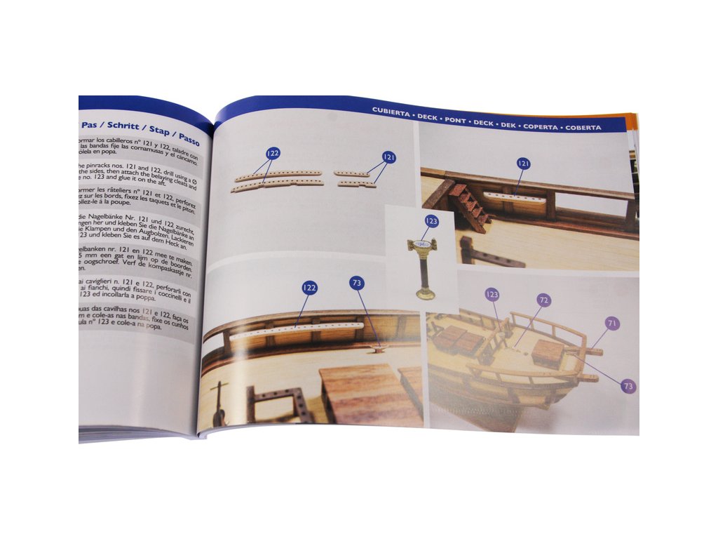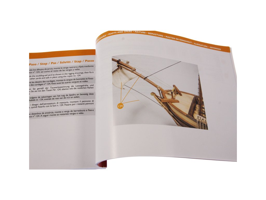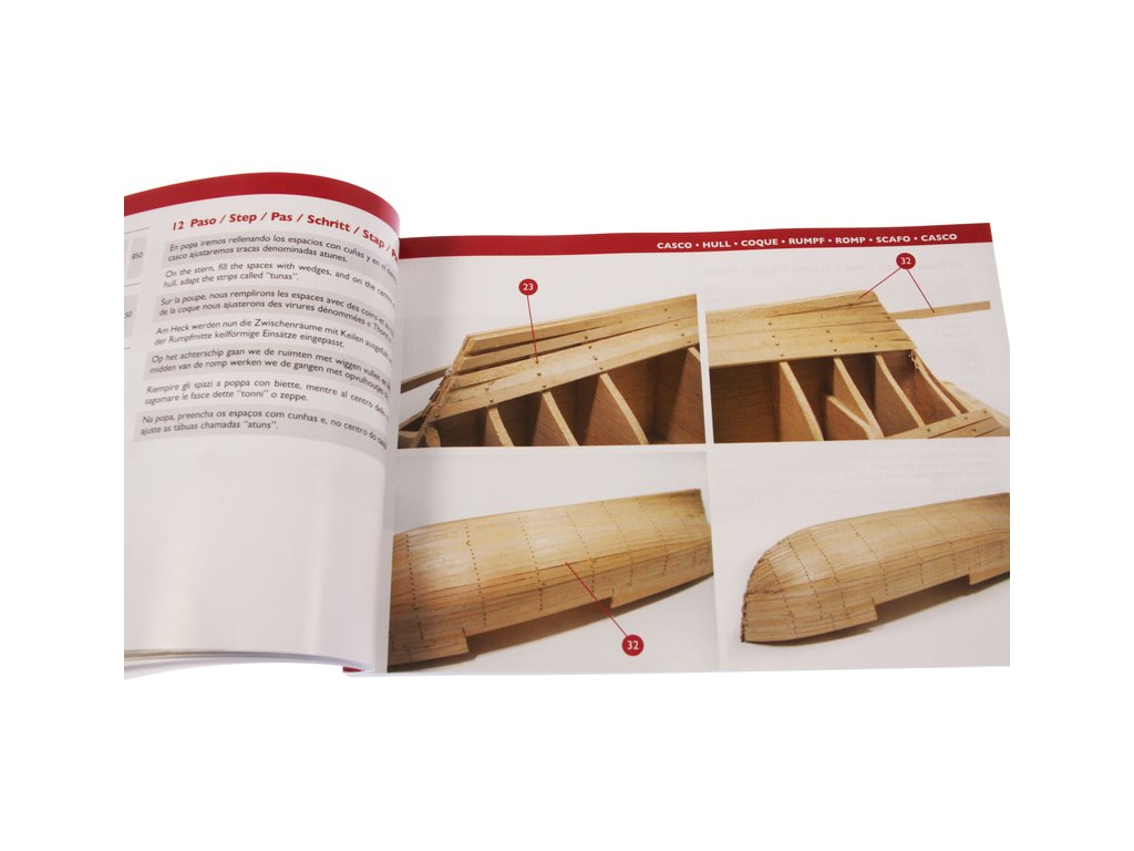 Stavebnice je bohatě vybavena veškerým kováním, nafukovacími čluny a šitými plachtami. Kýl a žebra jsou vyříznuty přesně laserem. Materiál je ve špičkové kvalitě. Sestavení pomáhají podrobné stavební plány a pokyny s mnoha ilustracemi. Předpokládá se určitá zkušenost a manuální zručnost stavitele a schopnost řešit stavební problémy. Návod určuje postup stavby ale nemůže obsáhnout technologii zpracování materiálů, způsob lepení, barvení, broušení či lakování. Jde o klasické modelářské postupy, které si každý modelář volí podle svých možností a zvyklostí. Proto je potřeba se obrnit trpělivostí a potřebné informace čerpat na webových stránkách lodních modelářů apod.