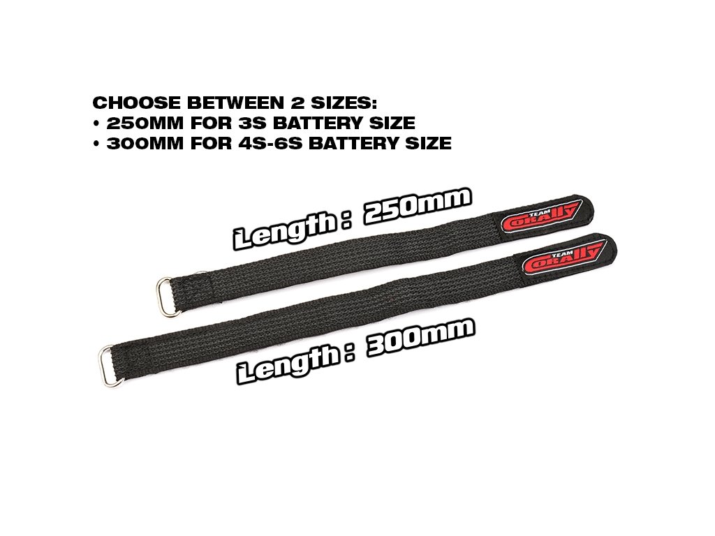 Stahovací pásky pro 4S Lipo, kovové očka, potažené silikonem proti skluzu, 350x20mm, 2 ks.Doplňkové parametry