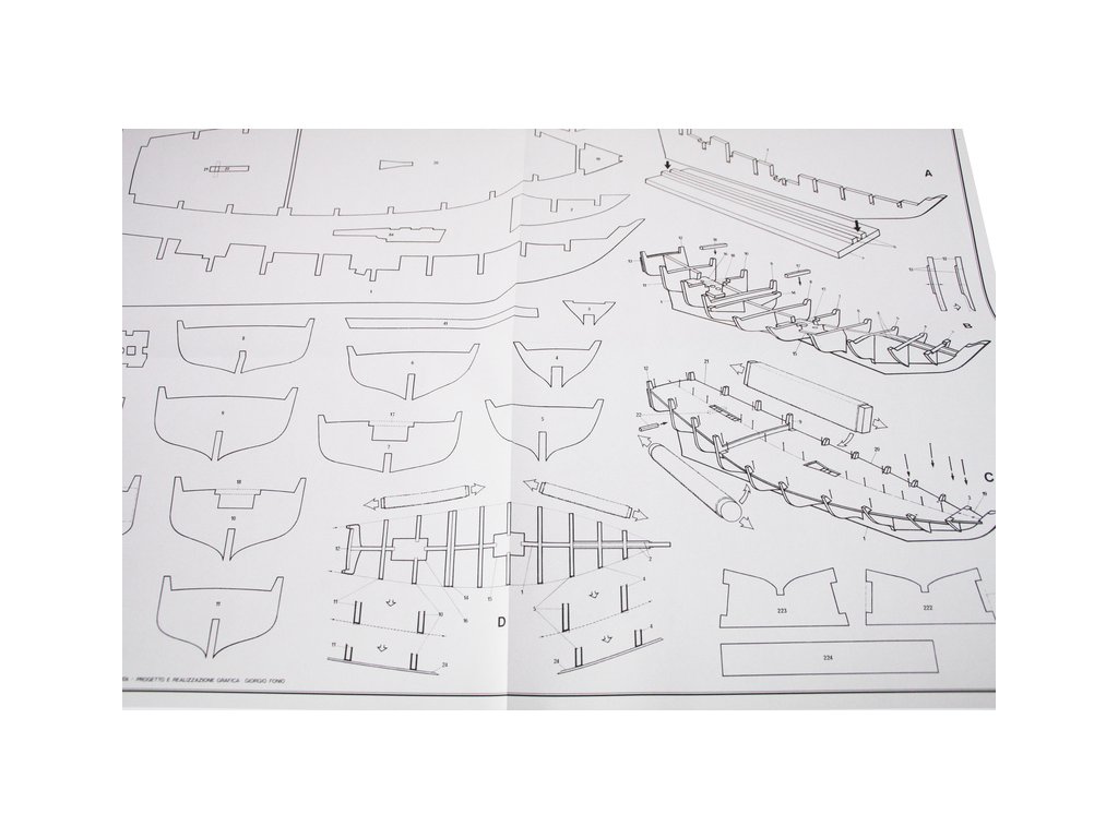 Set obsahuje kompletní sadu výkresové dokumentace modelu v měřítku 1:1 s postupem stavby, na výkrese jsou pečlivě označeny díly a je zde i seznam jednotlivých součástí modelu.