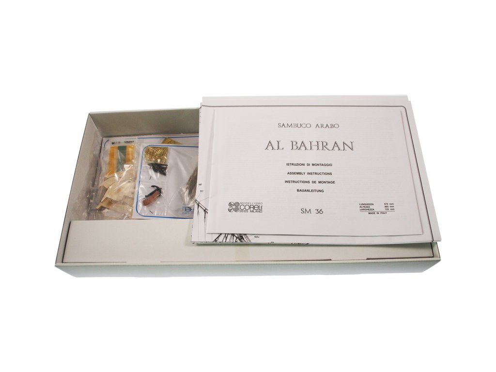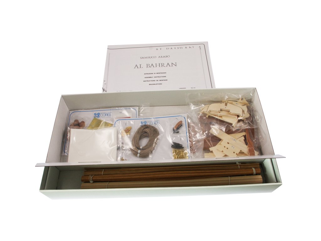 Neplovoucí model COREL Al Bahran 1:50 kit je stavebnice dřevěné makety lodi. Loď byla používána kolem Arabského poloostrova jak pro rybolov, tak pro přepravu zboží na volném moři. Stavebnice obsahuje potřebný materiál pro stavbu, kování, drobné příslušenství a stavební plány.