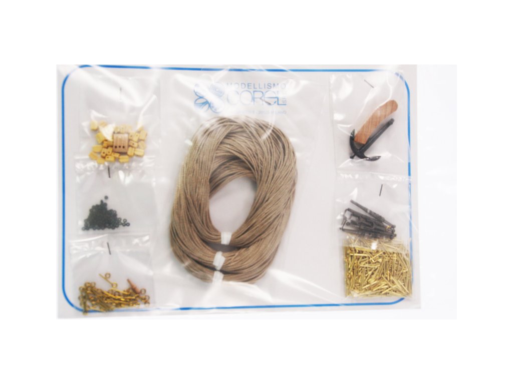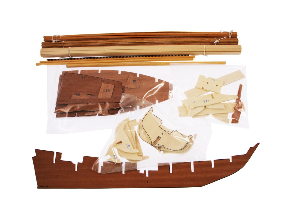 Balení obsahuje sadu překližkových dílů, sadu dřevěných lišt o různém průřezu, blistr s drobnými díly, díly z mosazi, sadu výkresů, návod CZ a vícejazyčný manuál.