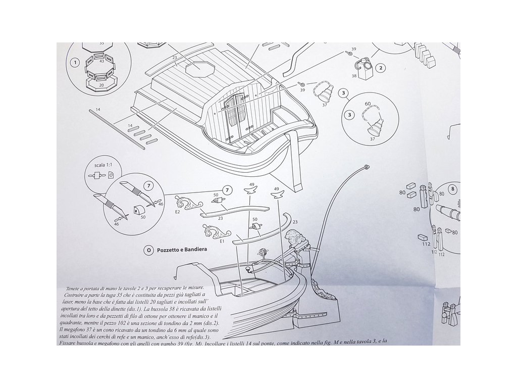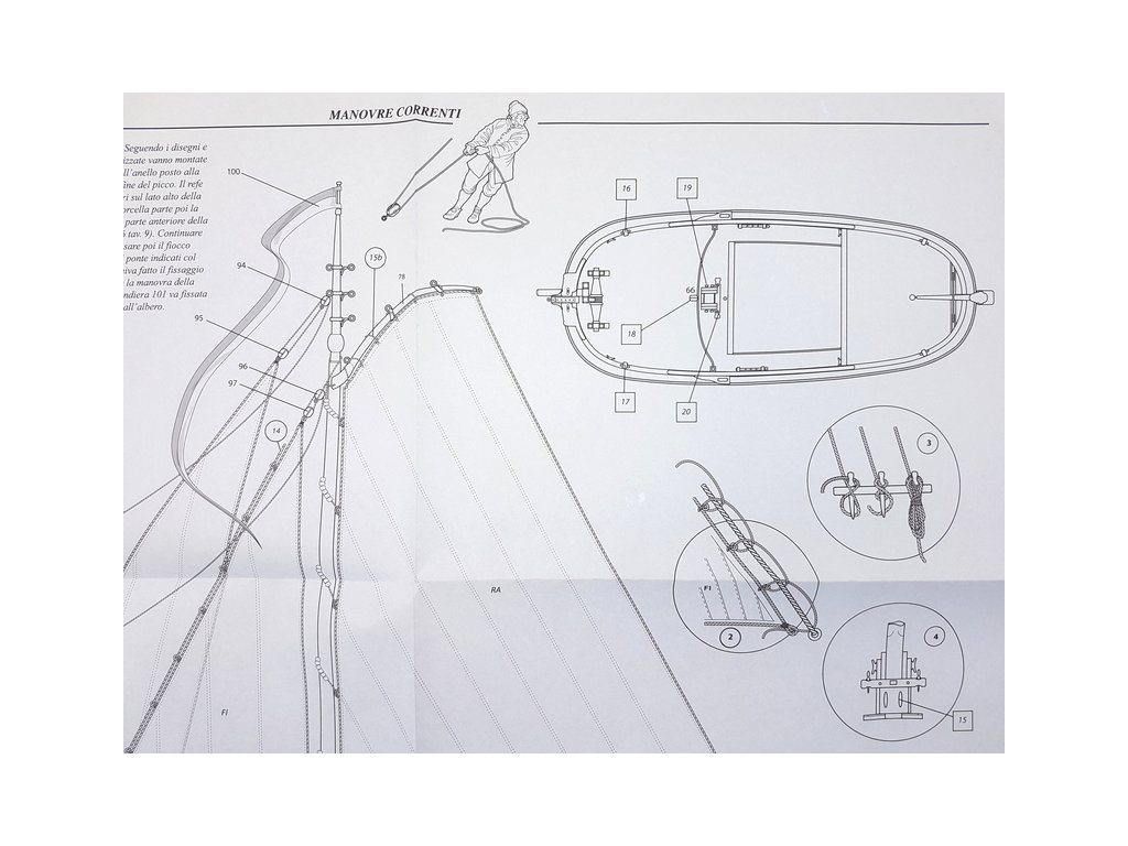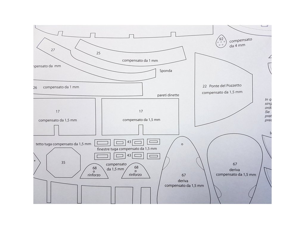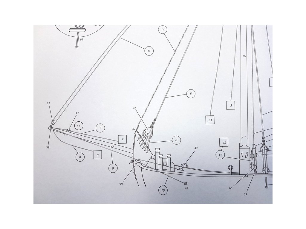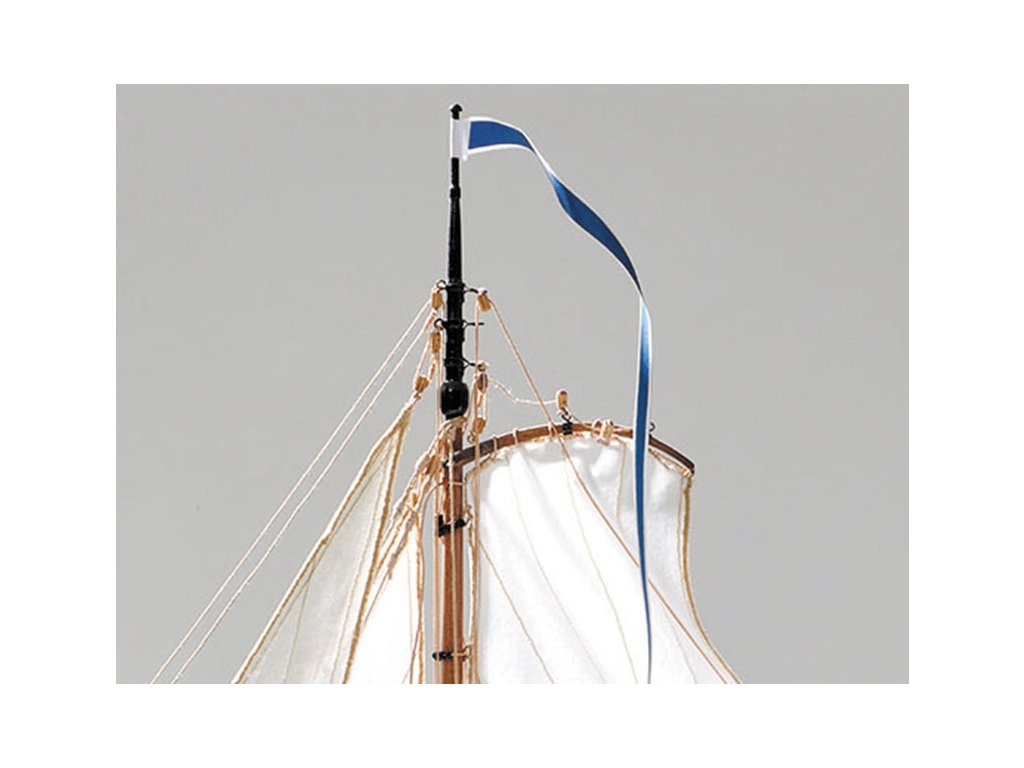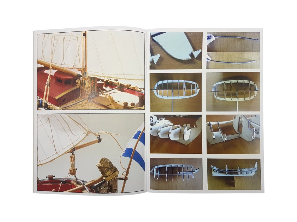 Po otevření víka krabice naleznete dřevěné díly modelu z překližky, lišty, drobné součásti v blistru, odlitky, kování, lanoví, plachtovinu, sadu výkresů a manuál.
