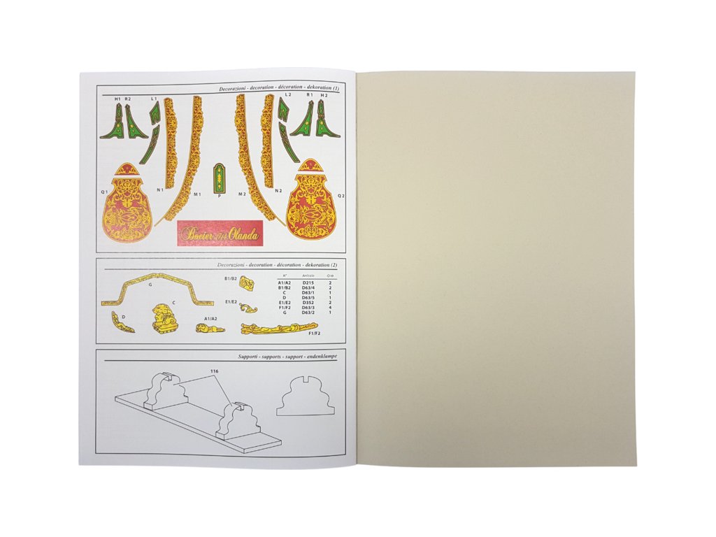 Set obsahuje obrazový návod. Na výkresech jsou nakresleny montážní sestavy. Vícejazyčný obecný postup stavby.