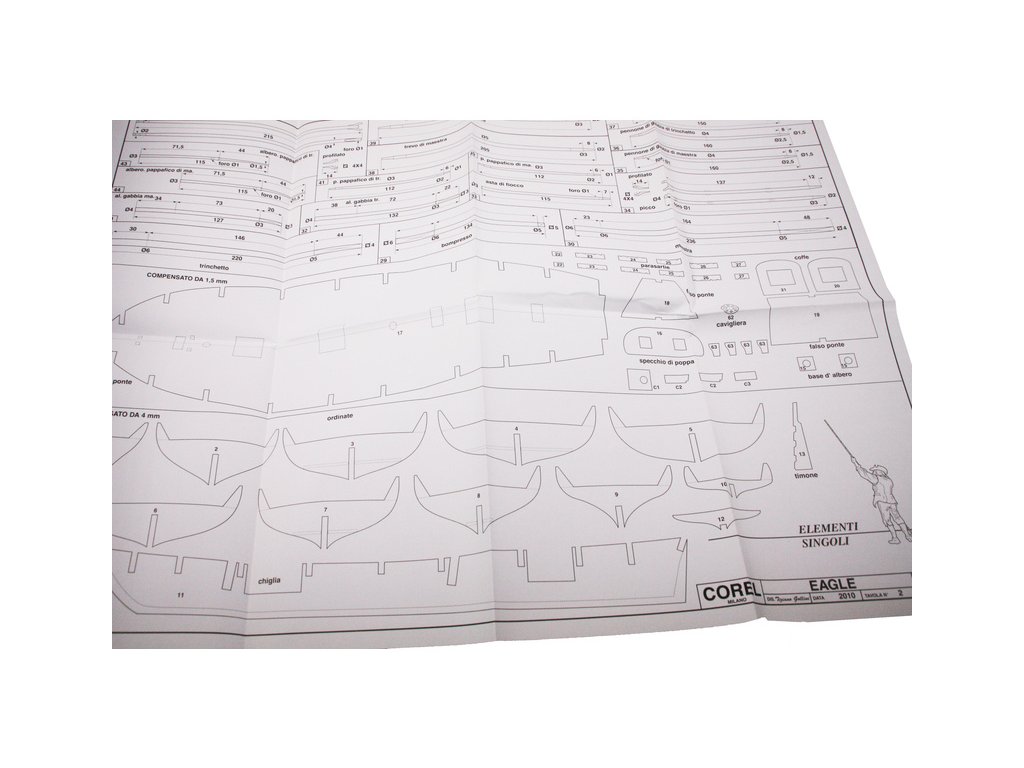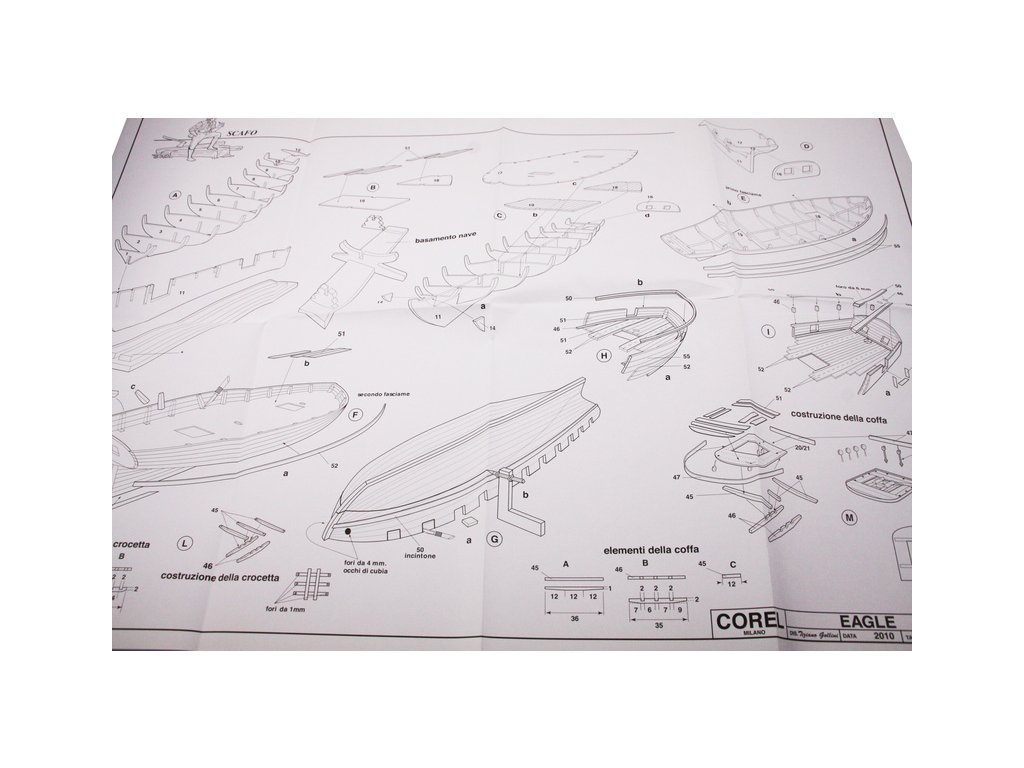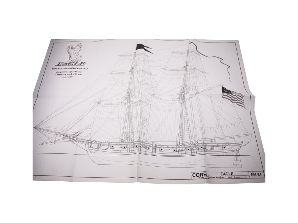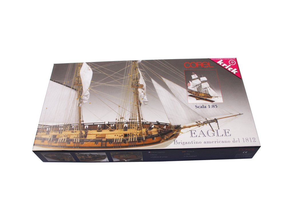 Stavebnice neplovoucího modelu COREL Eagle briga v měřítku 1:85 z roku 1812. USS Eagle, šalupa, byla obchodní lodˇ, zakoupená ve Vergennes, Vermont na jezeře Champlain v roce 1812 a vybavena pro námořní službu. Plán je velmi detailní, v balení jsou dřevěné díly, lišty a množství kování, lanoví, plátno na plachty a další.