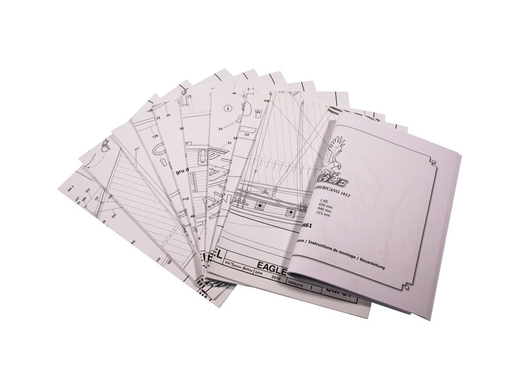 Set obsahuje kompletní sadu výkresové dokumentace modelu v měřítku 1:1 s postupem stavby, na výkrese jsou pečlivě označeny díly a je zde i seznam jednotlivých součástí modelu.