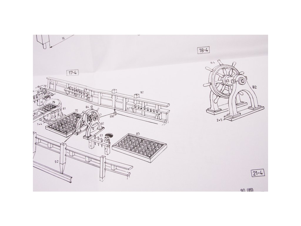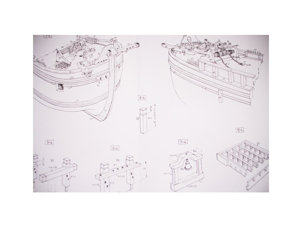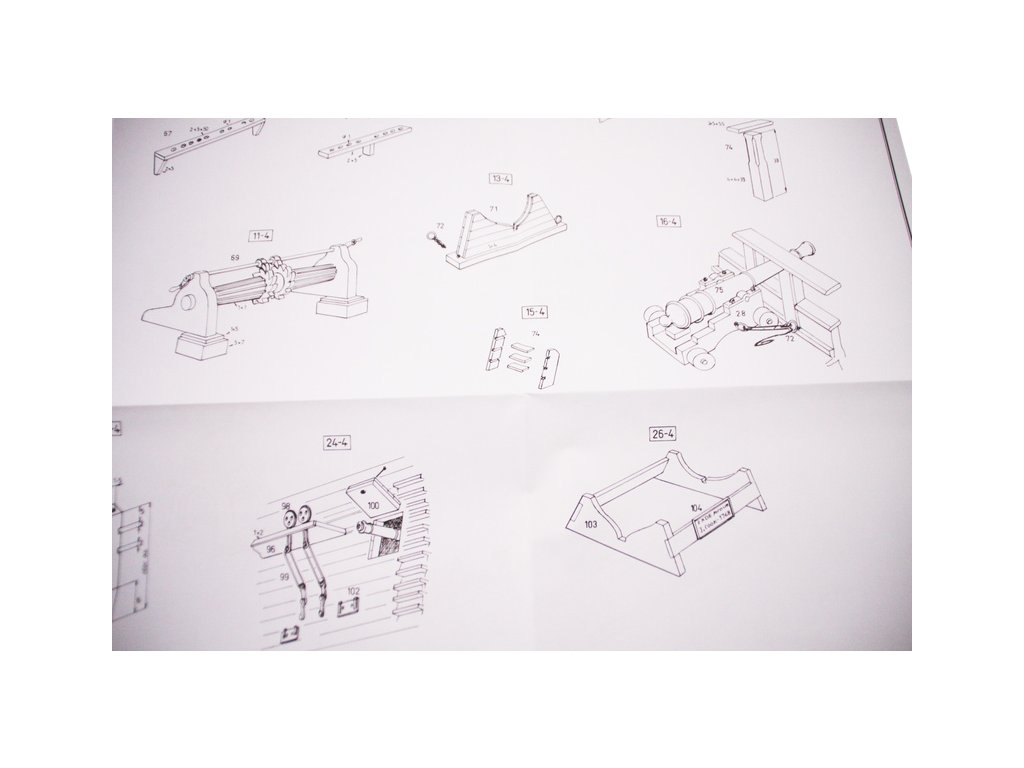 Set obsahuje kompletní sadu výkresové dokumentace modelu v měřítku 1:1 s postupem stavby, na výkrese jsou pečlivě označeny díly a je zde i seznam jednotlivých součástí modelu.