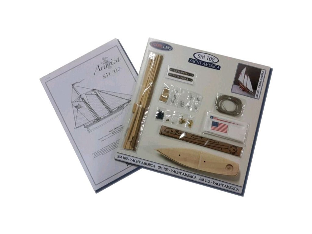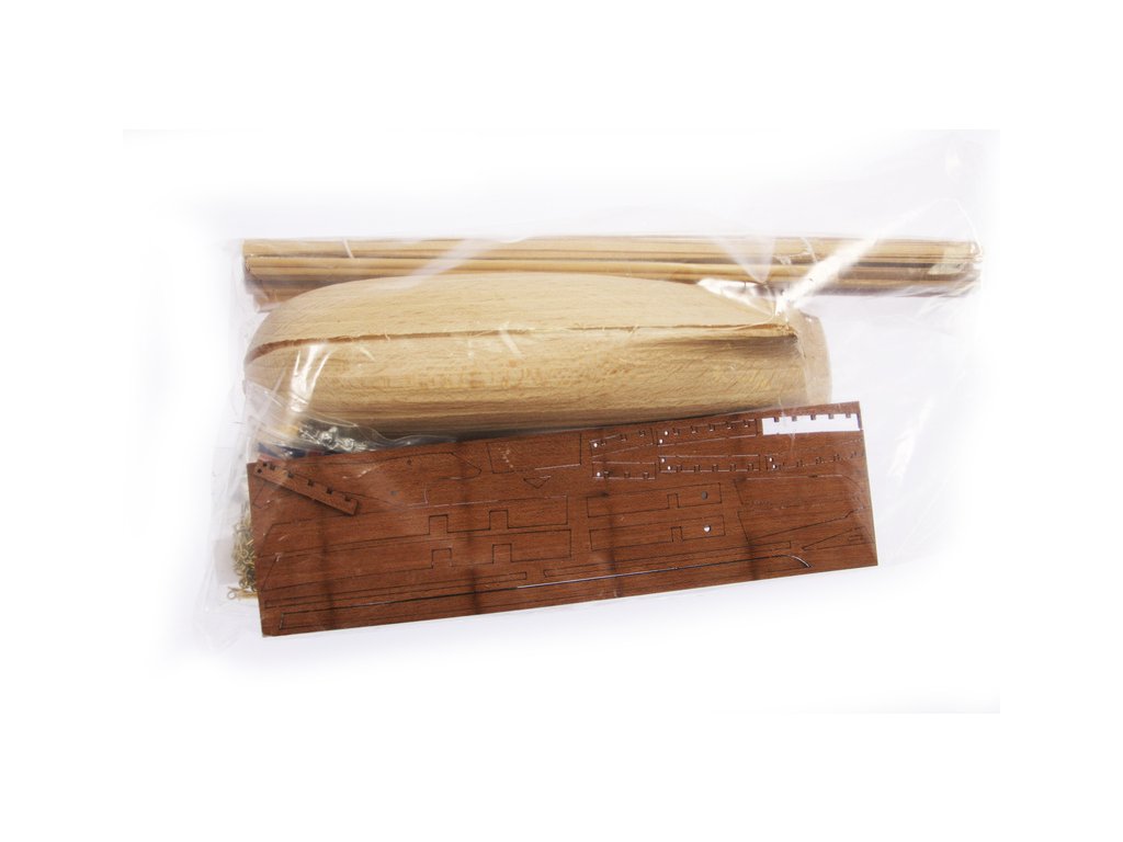 Balení obsahuje trup lodi, sadu překližkových dílů, sadu dřevěných lišt o různém průřezu, sáček s drobnými díly, sadu výkresů a vícejazyčný manuál.